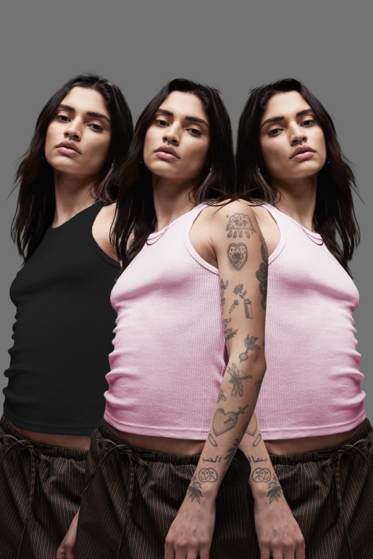 Paket içeriği: 3 adet crop atlet (1 siyah, 2 pembe tonlu)