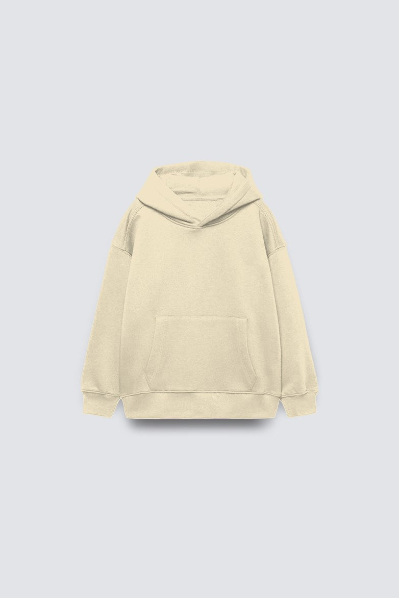 Bej Basic Kapüşonlu Kanguru Cepli Bel Ve Paça Lastikli Çocuk Oversize Eşofman Takımı - BEJ / 4-5 Yaş