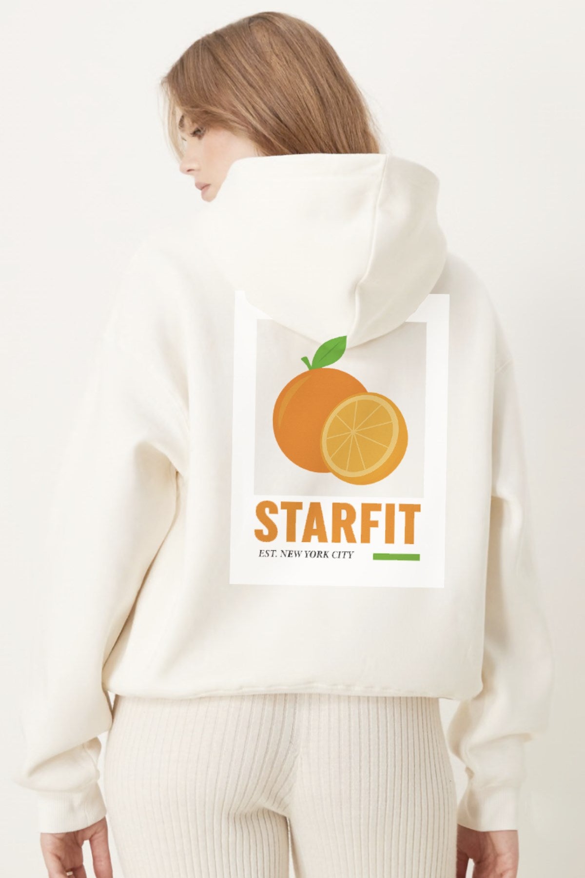 Beyaz Oversize Hoodie Beyaz – 3 İplik Şardonlu, Kapüşonlu Kanguru Cepli, Sırt Tam Portakal Baskı