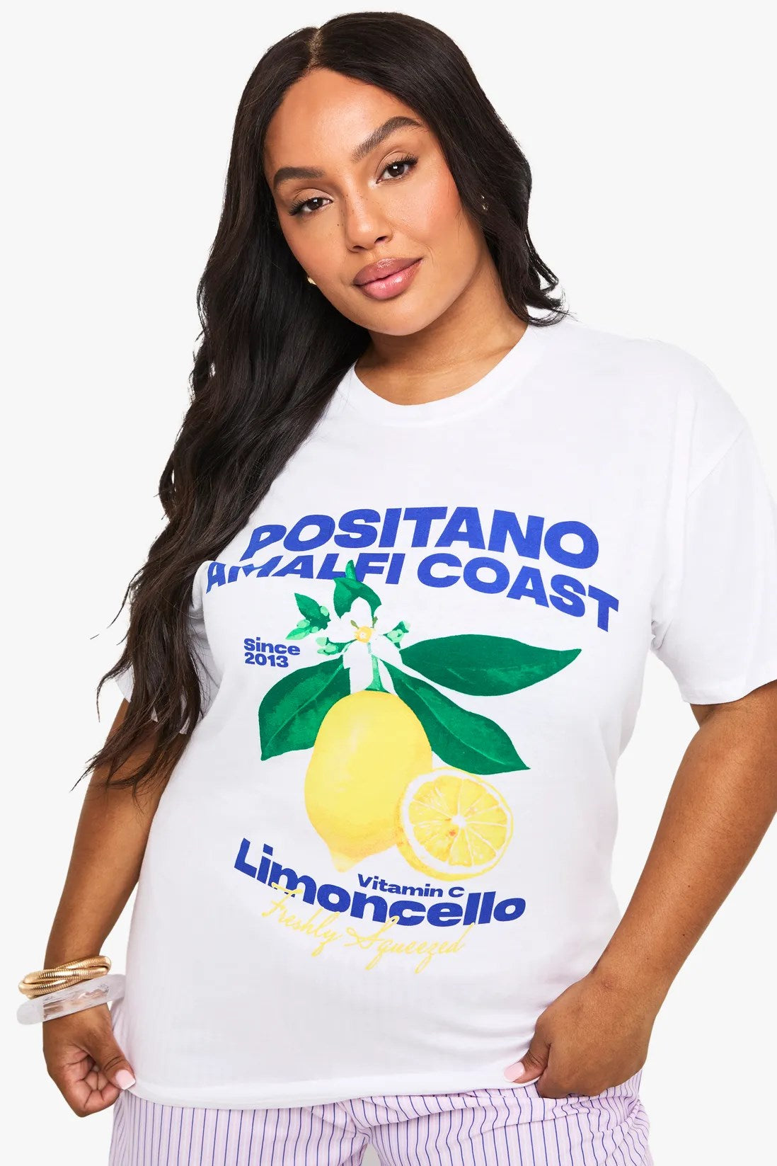 Yaza enerji katan tasarımıyla dikkat çeken bu beyaz oversize limon baskılı kadın tişört, büyük beden kullanıcılar için özel olarak tasarlandı. %100 pamuk kumaşı sayesinde terletmeyen ve nefes alabilen bir yapı sunar. Renkli yaz baskısı ve "Positano Amalfi Coast" teması ile Akdeniz ruhunu tarzınıza taşır.
