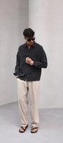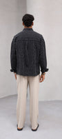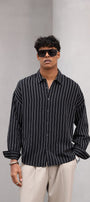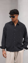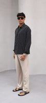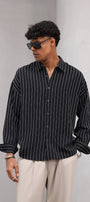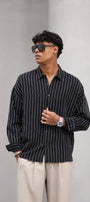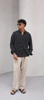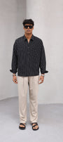 Çizgili Naturel Renk Oversize Erkek Gömlek - Siyah / M