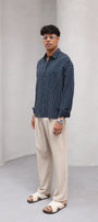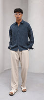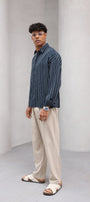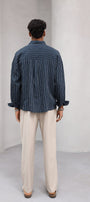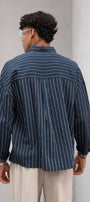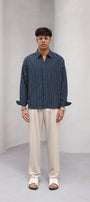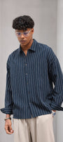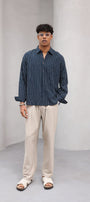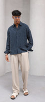 Çizgili Naturel Renk Oversize Erkek Gömlek - Lacivert / S