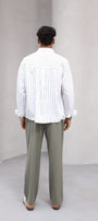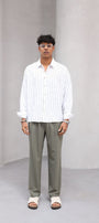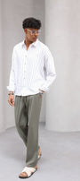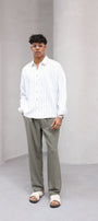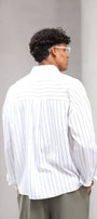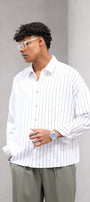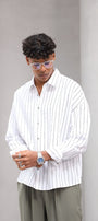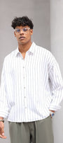 Çizgili Naturel Renk Oversize Erkek Gömlek - Beyaz / L