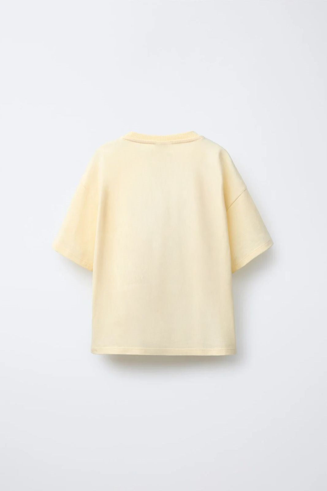 Çocuk Sarı Tişört Strawberry Fields Baskılı %100 Pamuk Rahat Kalıp Kısa Kollu Model