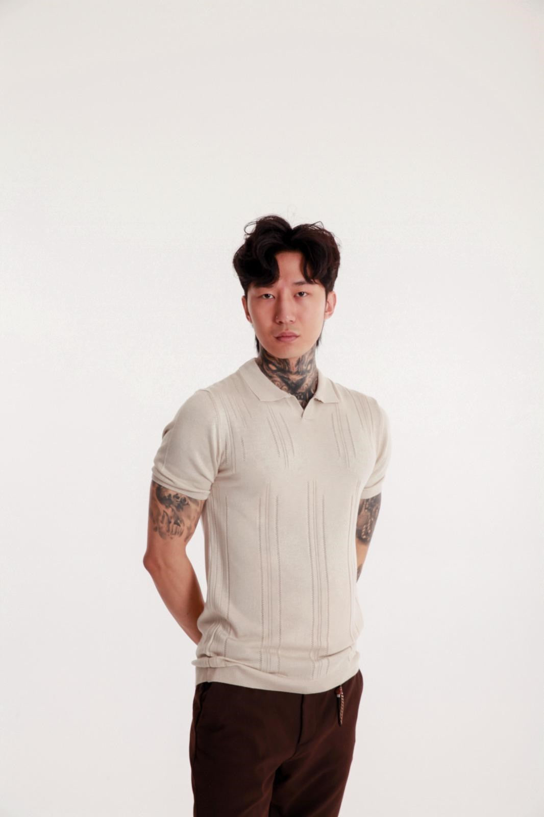 Erkek Bej Polo Yaka Triko Tişört – Kısa Kollu, Yazlık Modern Slim Fit Örgü Model