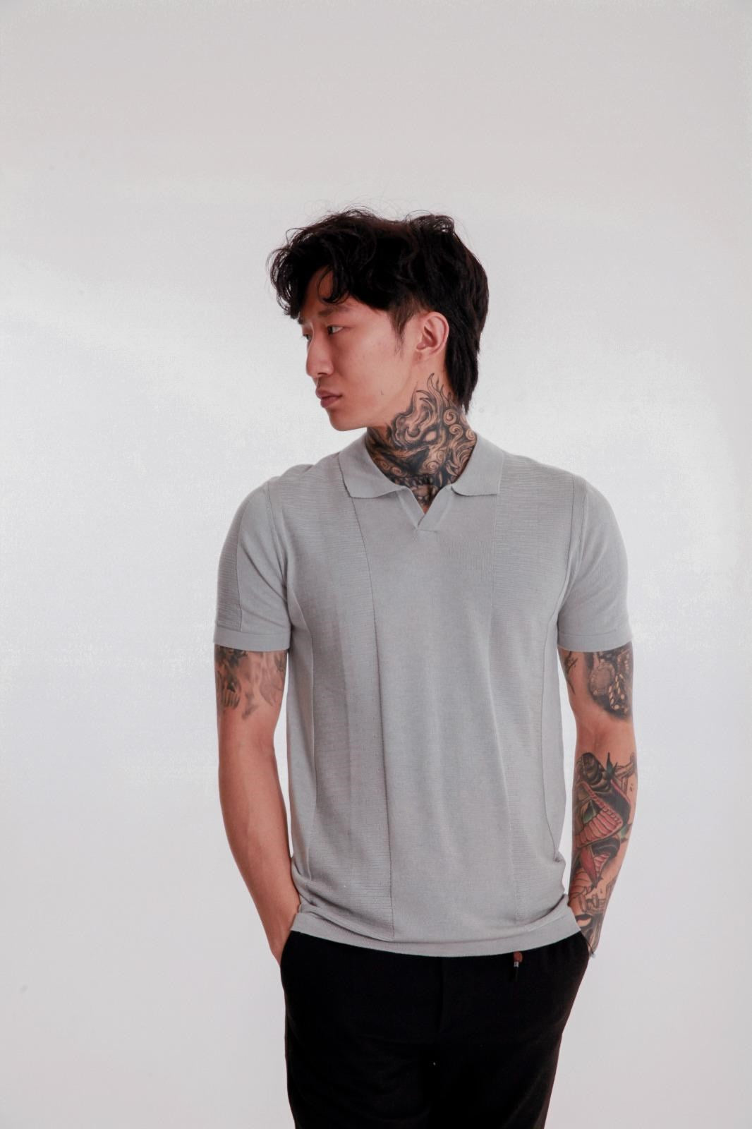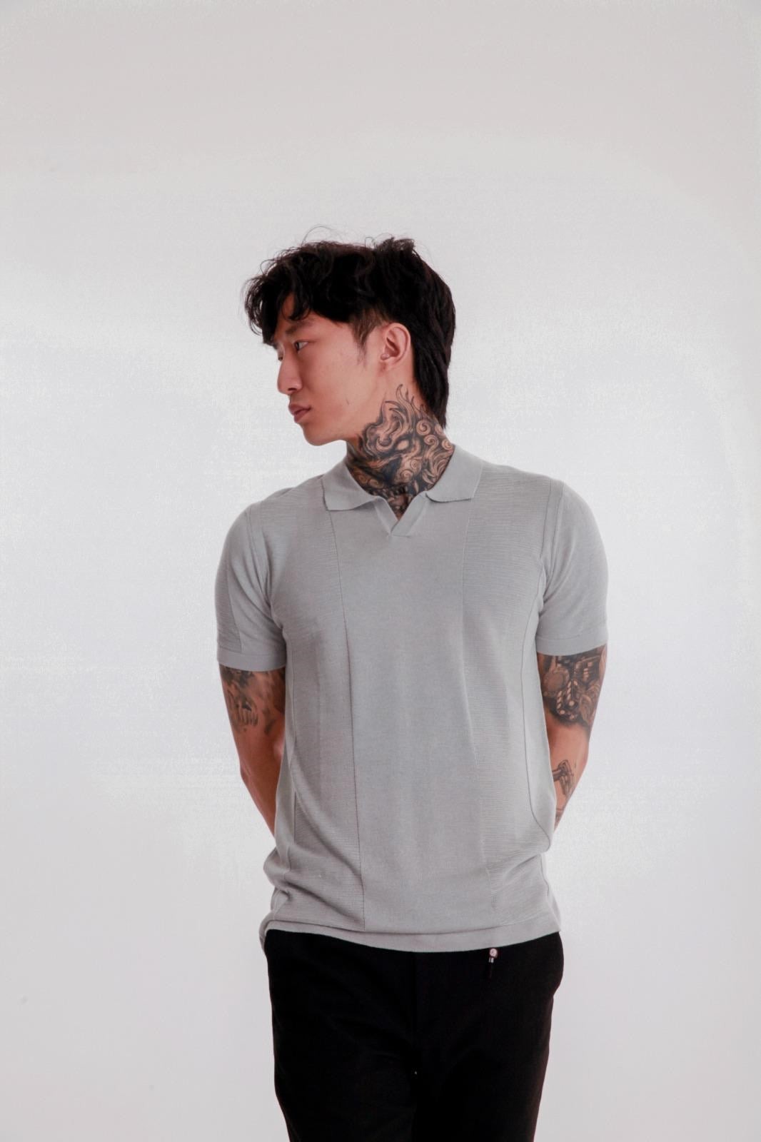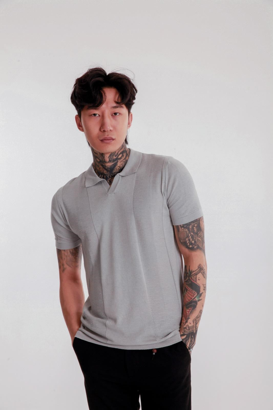 Erkek Gri Polo Yaka Triko Tişört – Kısa Kollu Modern Rahat Kalıp Yazlık Model