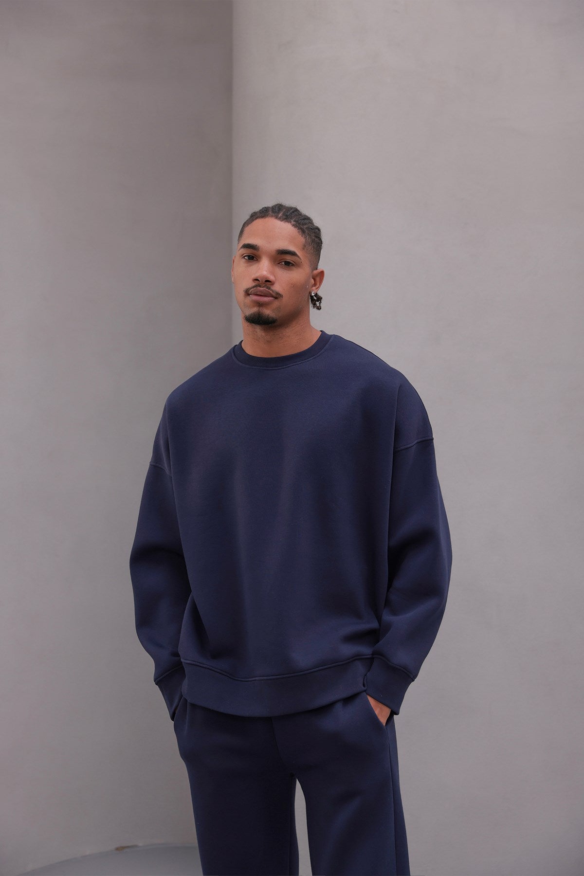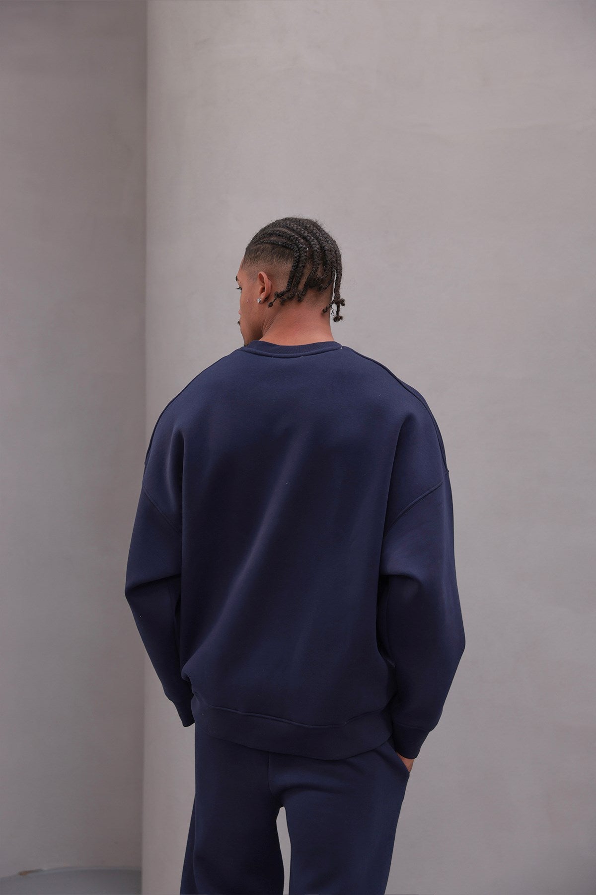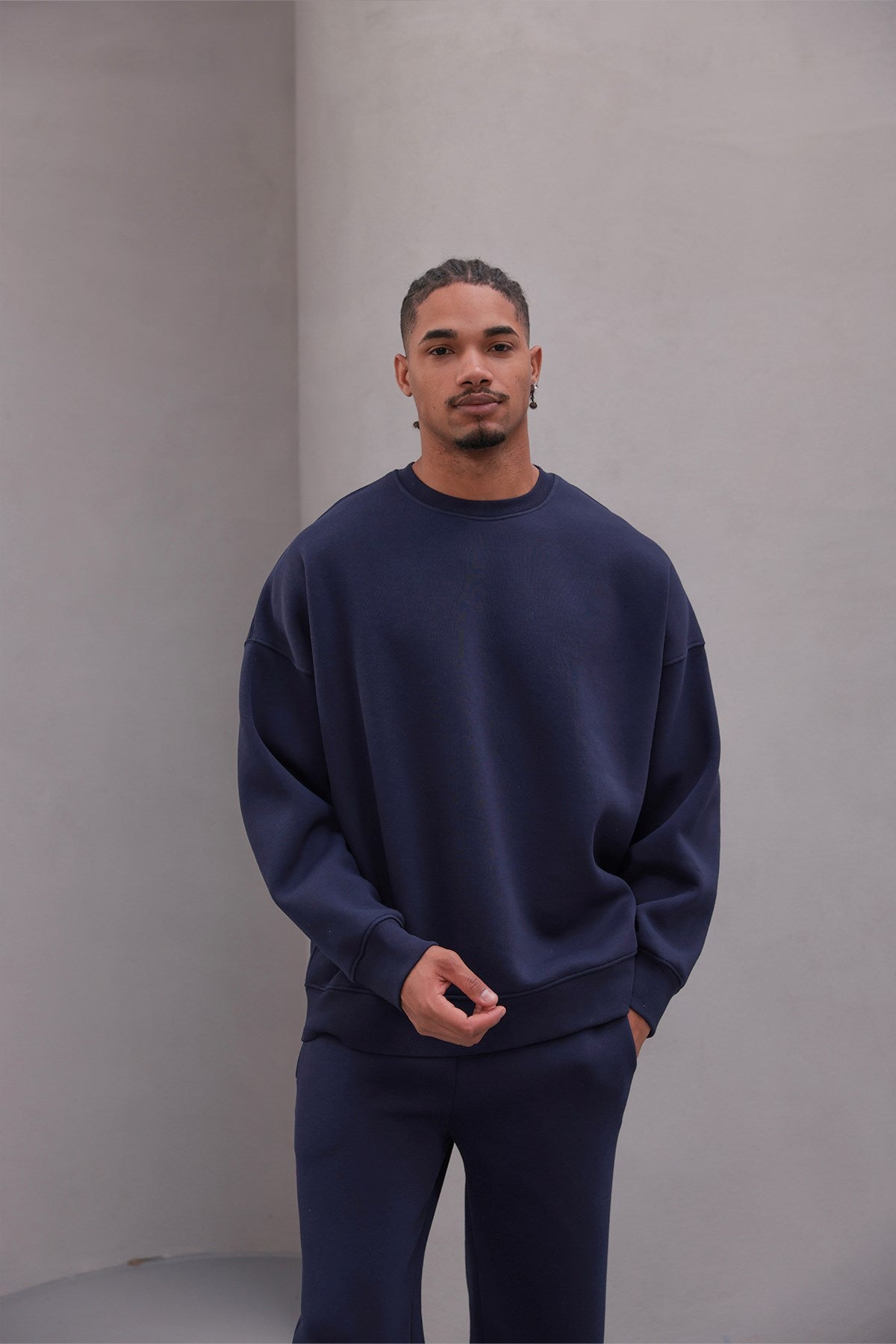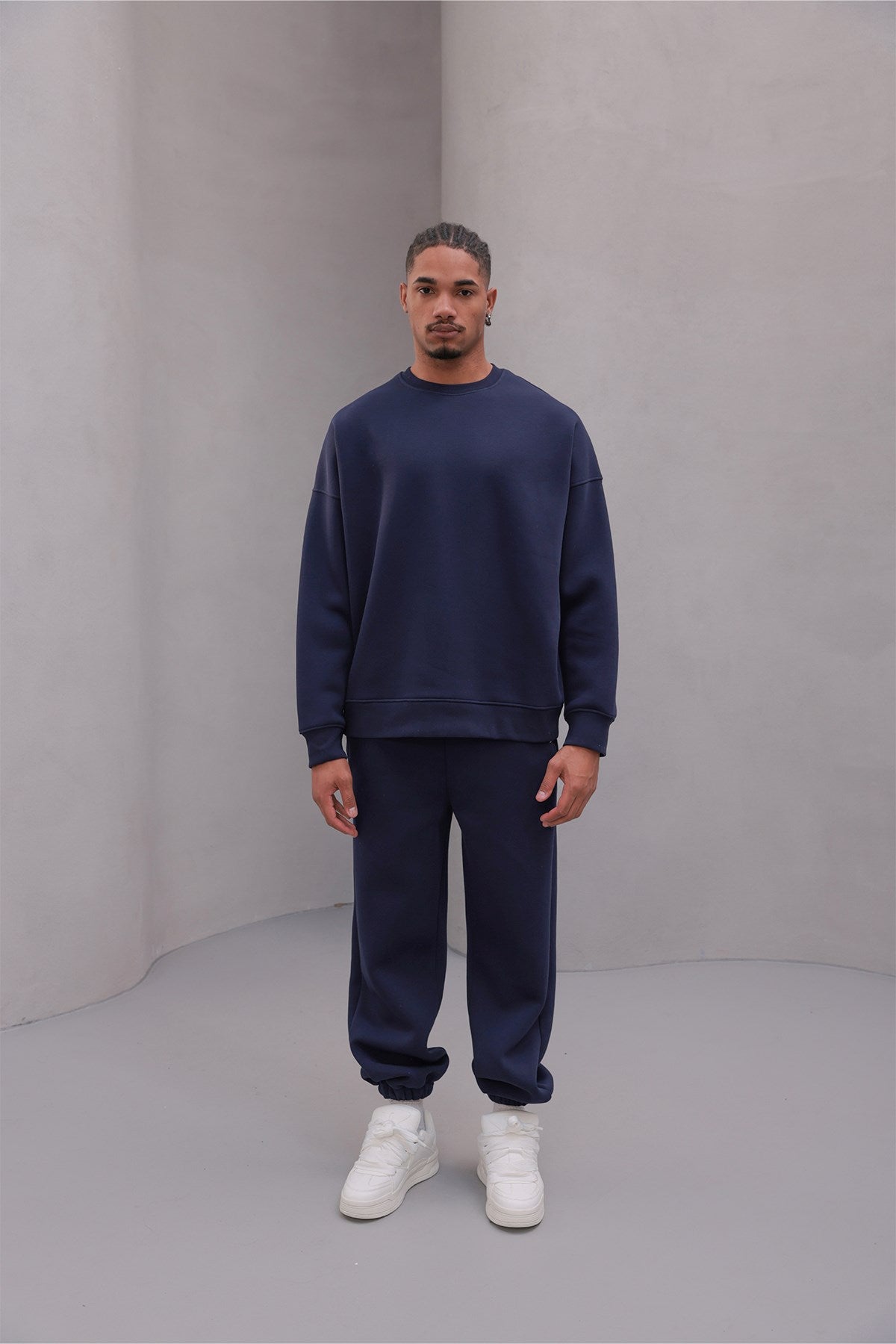 Erkek Oversize Eşofman Takımı Basic Lacivert – Bisiklet Yaka, Lastikli Paça, 3 İplik Polar