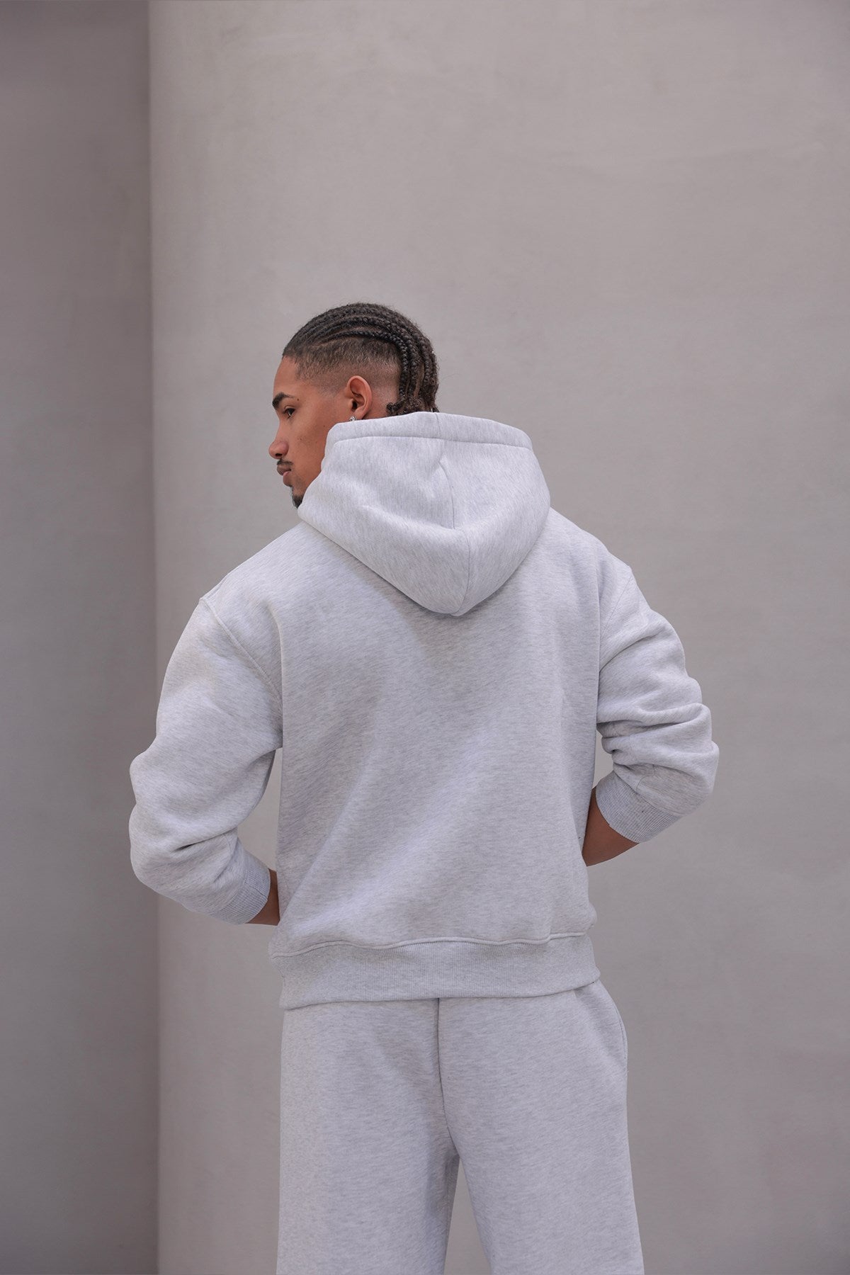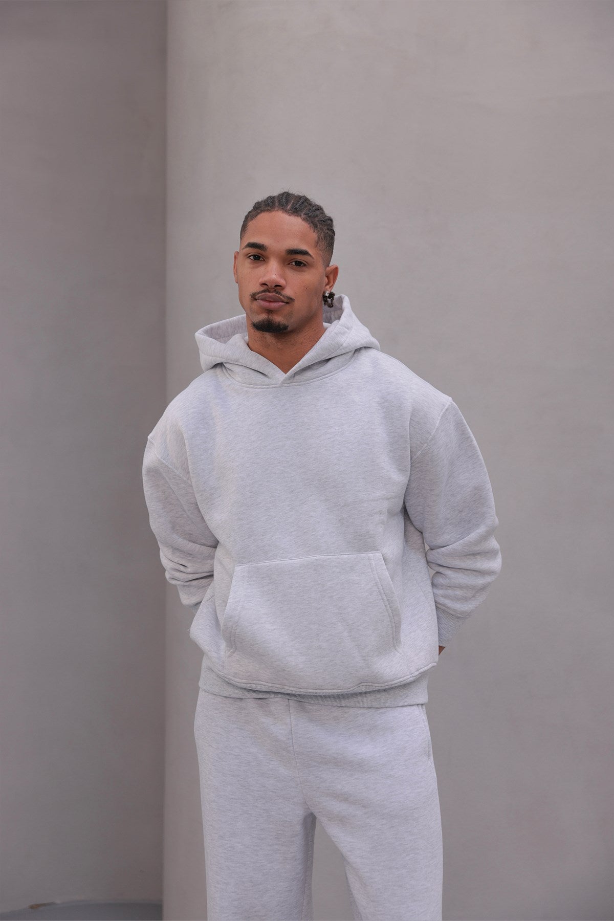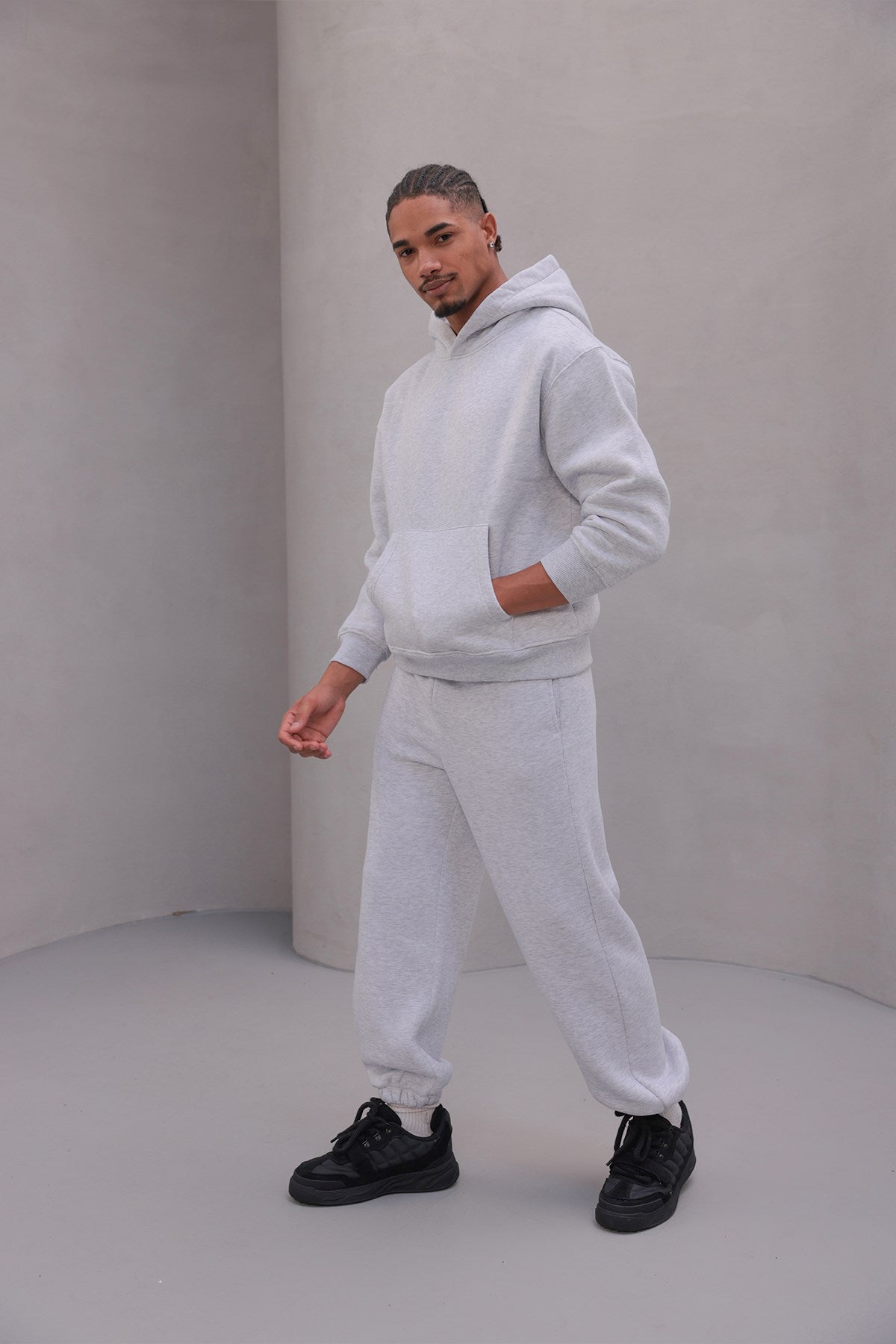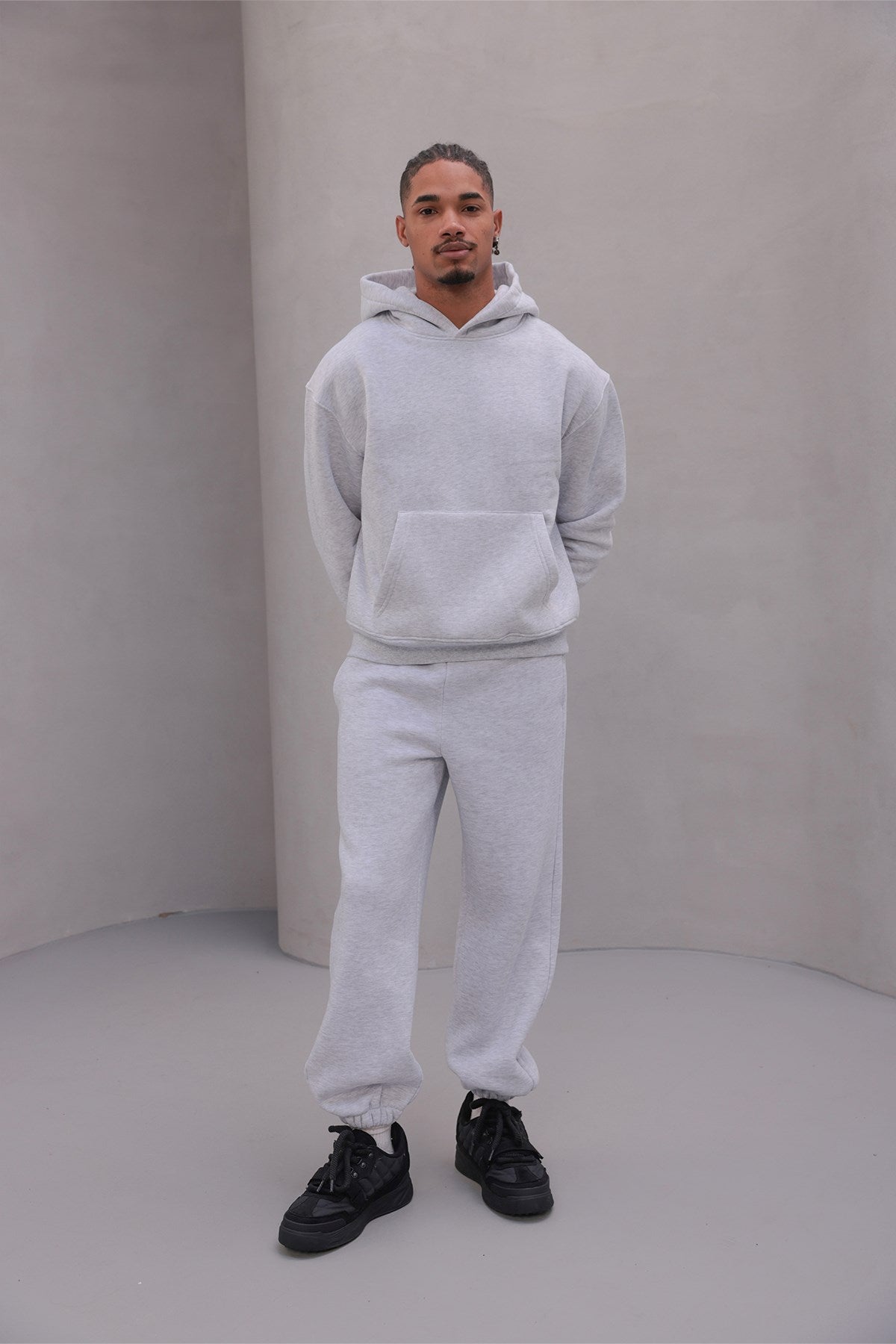 Erkek Oversize Eşofman Takımı Gri – Basic, 3 İplik Şardonlu Polar; Kapüşonlu Üst, Lastikli Alt