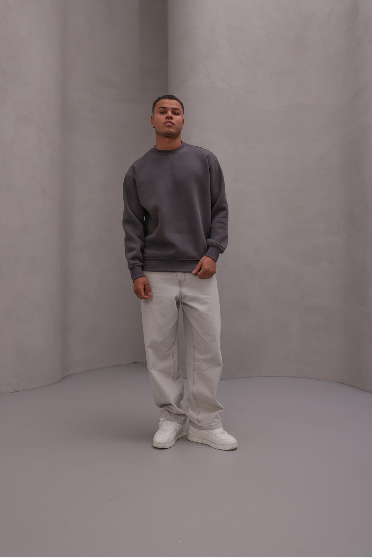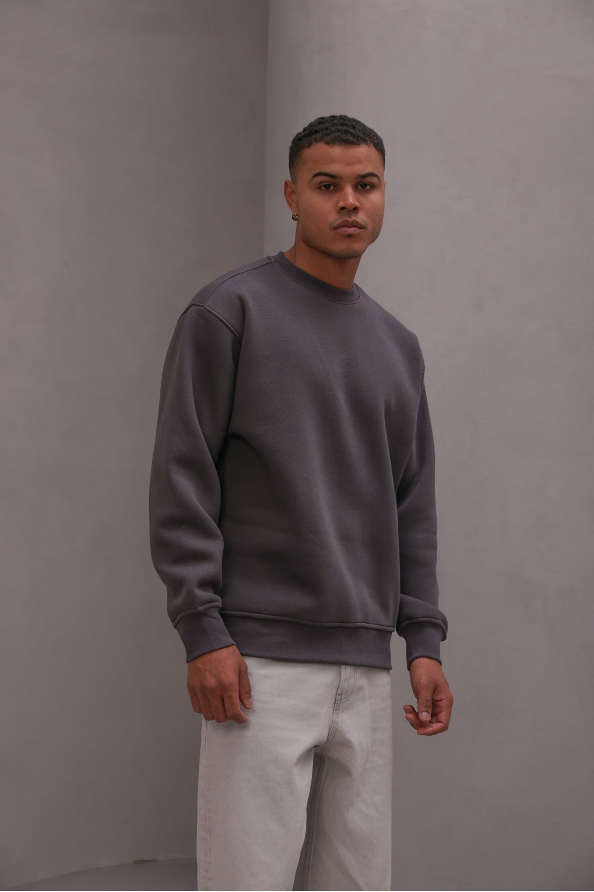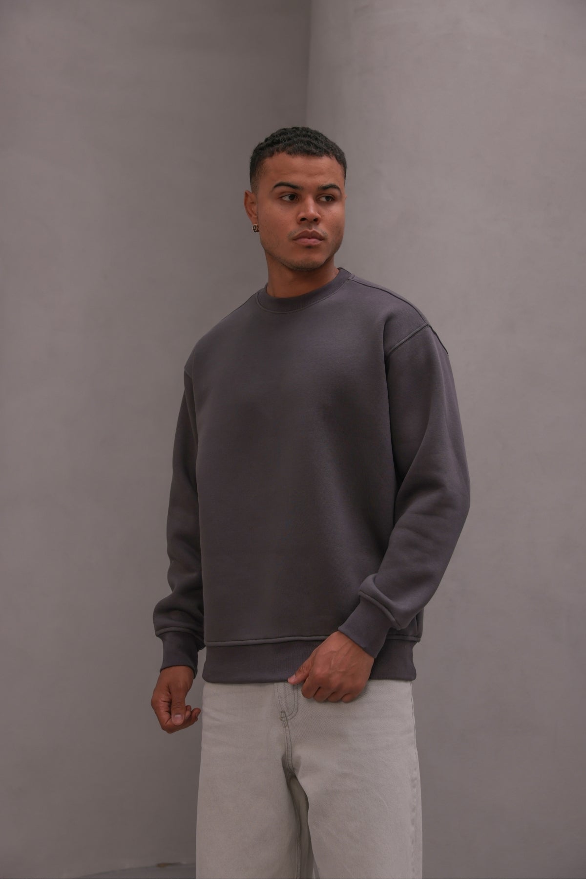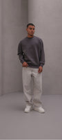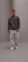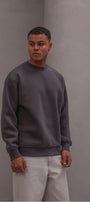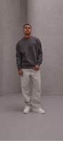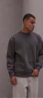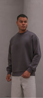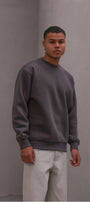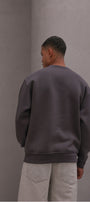 Erkek Oversize Sweatshirt Basic Füme – Bisiklet Yaka, 3 İplik Şardonlu Polar