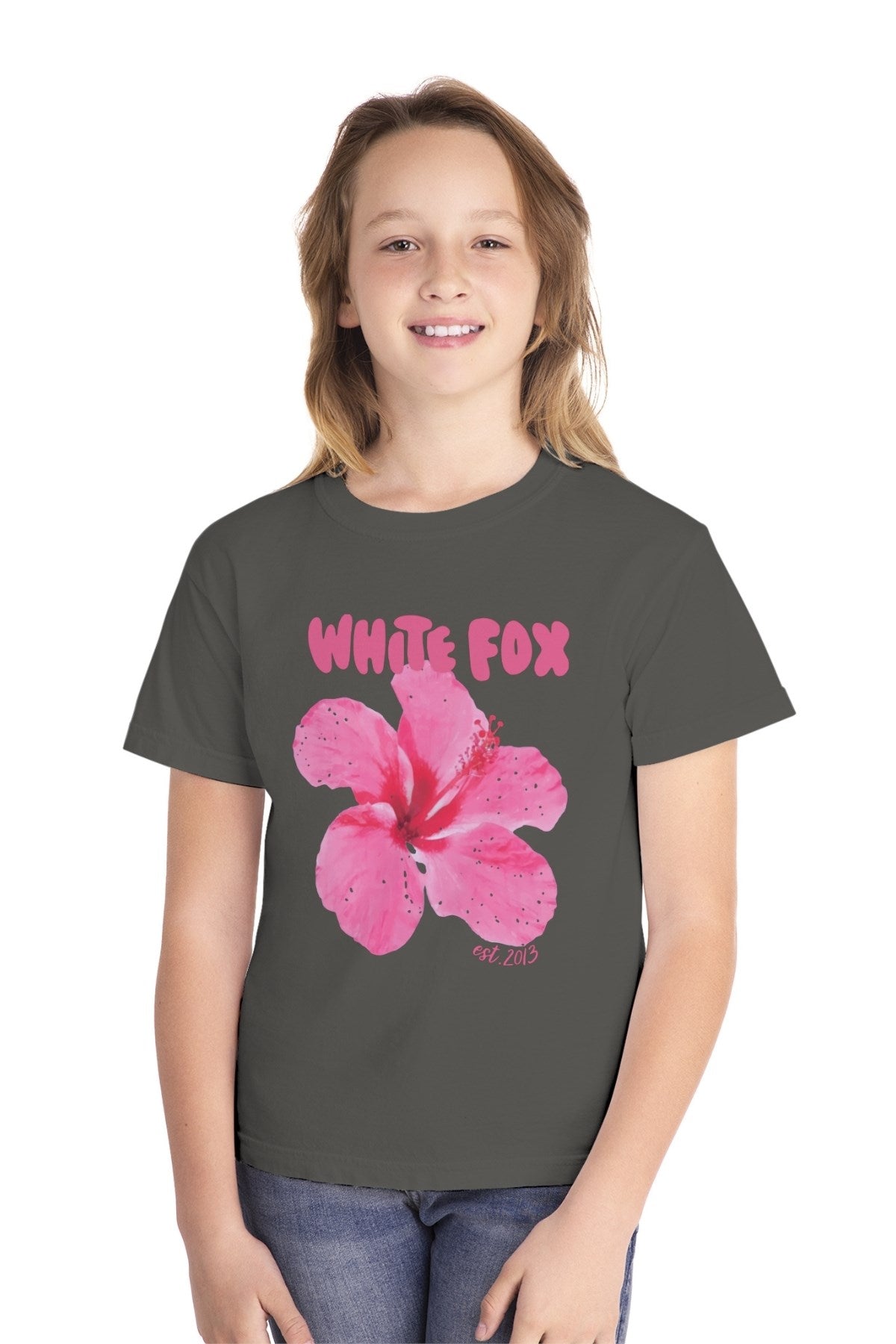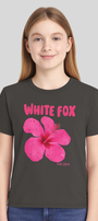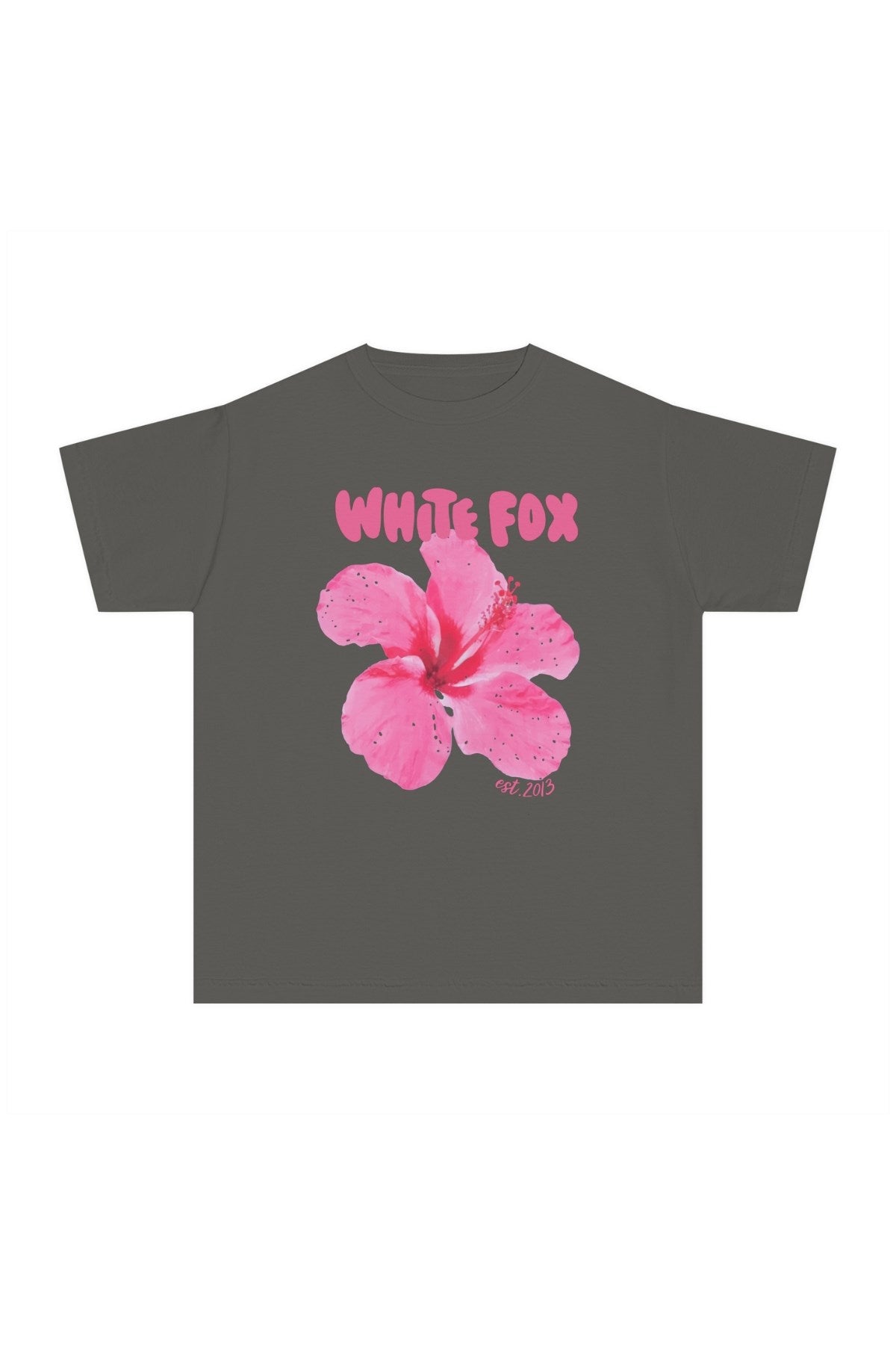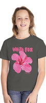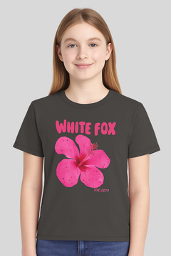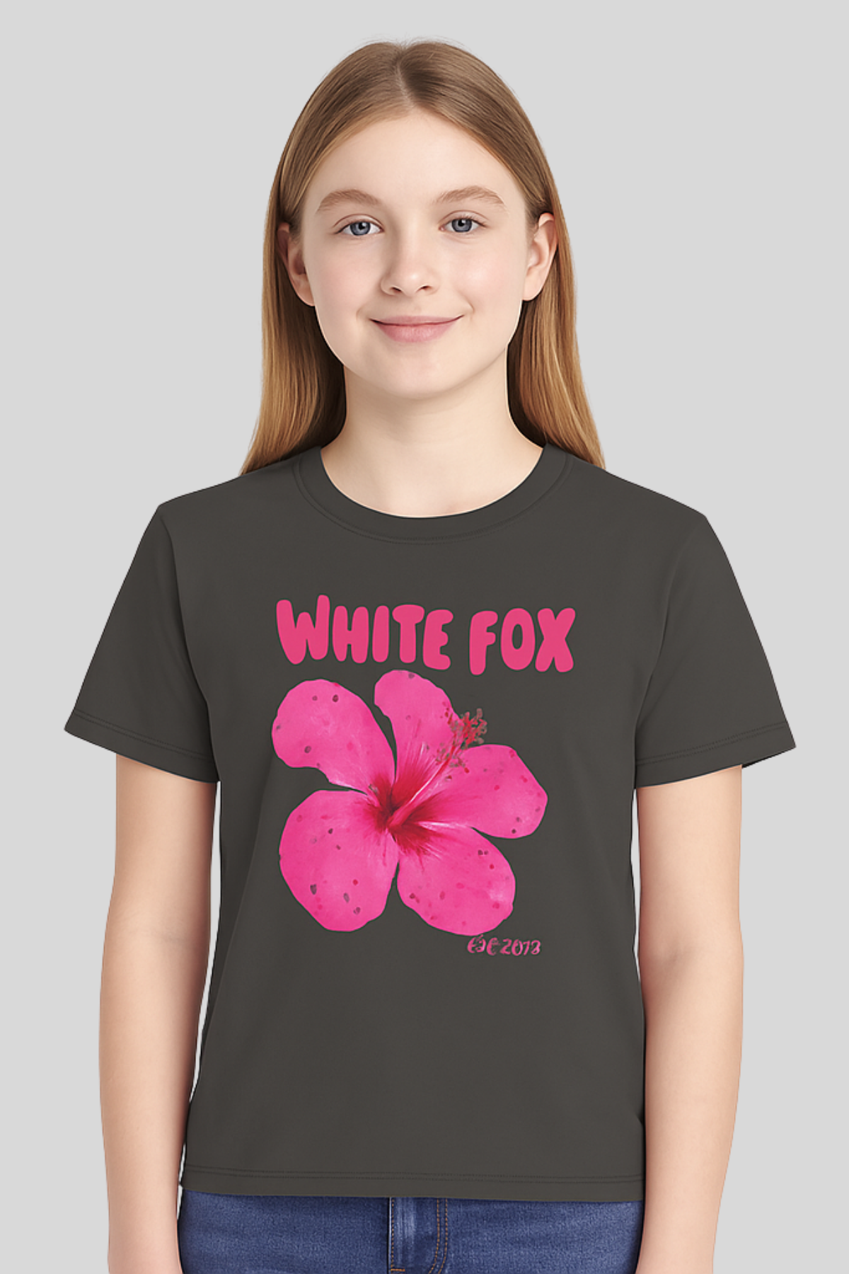 Füme Renk Hibiskus Çiçekli Kız Çocuk Tişört %100 Pamuk
