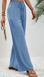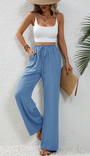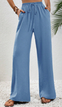 Kadın Beli Lastikli Rahat Kalıp Aerobin Kumaş Kadın Pantolon - Mavi / XS