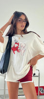 Kadın Beyaz Oversize Karakter Baskılı Eğlenceli Tişört