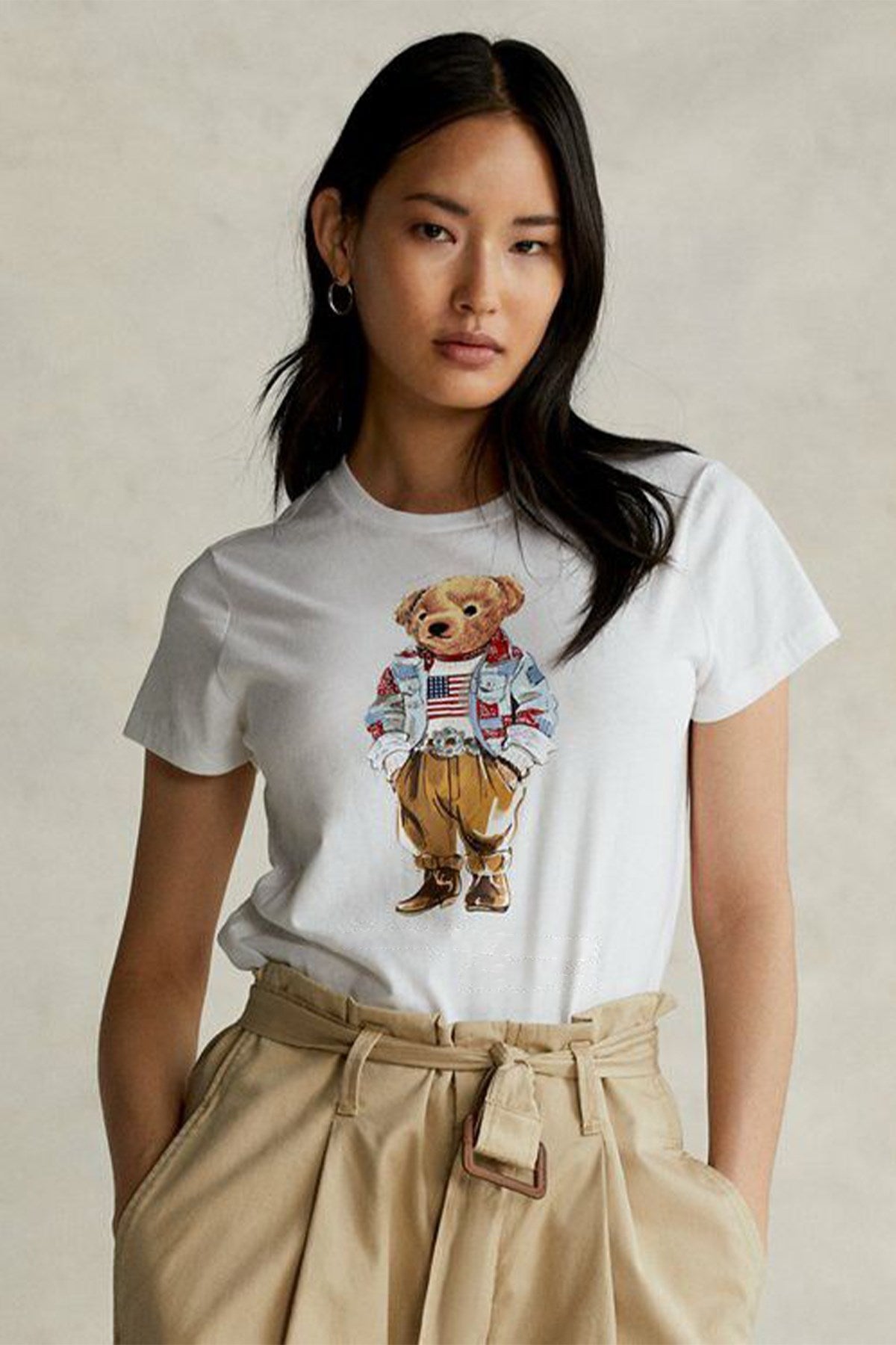 Kadın Grafik Ayıcık Desenli Casual Beyaz Tişört