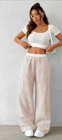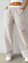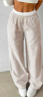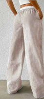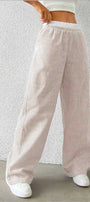 Kadın Gri Çizgili Poplin Dokuma Pantolon – Yüksek Bel Lastikli Bol Paça Rahat Model - BEYAZ-GRİ / S