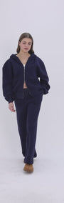 %87 pamuk ve %13 poliviskon içeriğe sahip, 300–320 gr 3 iplik şardonlu polar kumaştan üretilen bu kadın oversize eşofman takımı; yumuşak iç yüzeyiyle ısıyı hapseder ve gün boyu konfor sağlar. Üst parçada kapüşon, metal çift yön fermuar ve rahat kanguru cepler bulunur. Alt parça ise lastikli-bel ve ayarlanabilir bağcıkla konforu artırırken bol paça kesimle modern bir siluet sunar. Oversize kalıp rahat hareket imkânı verir; günlük, spor ve casual kombinlerde kolayca kullanılır.