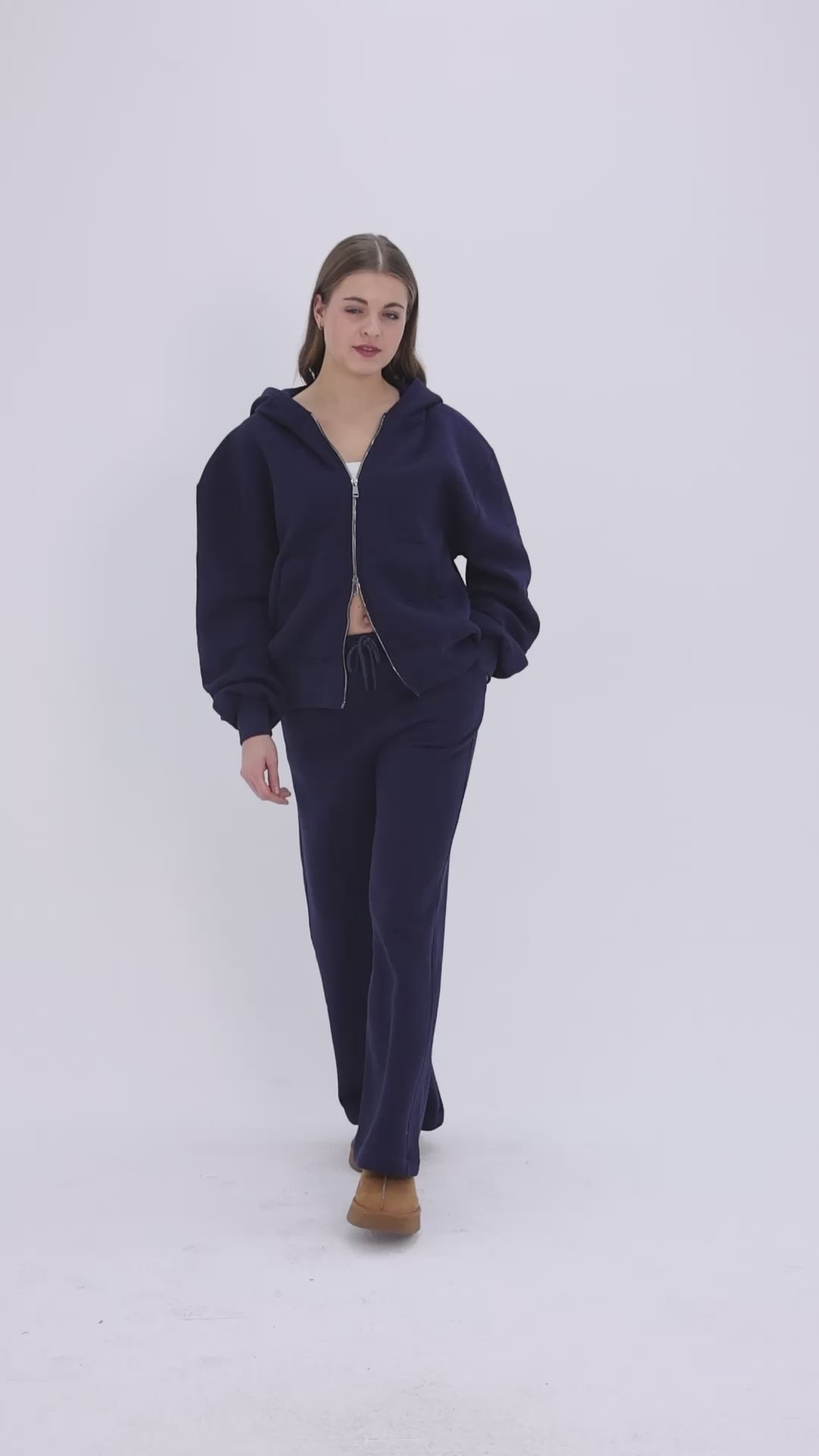Kalıp: Kadın, oversize – Üst: Fermuarlı, kapüşonlu, cepli – Alt: Lastikli bel, bağcıklı, bol paça – Kumaş: 3 iplik şardonlu polar, 300–320 gr.