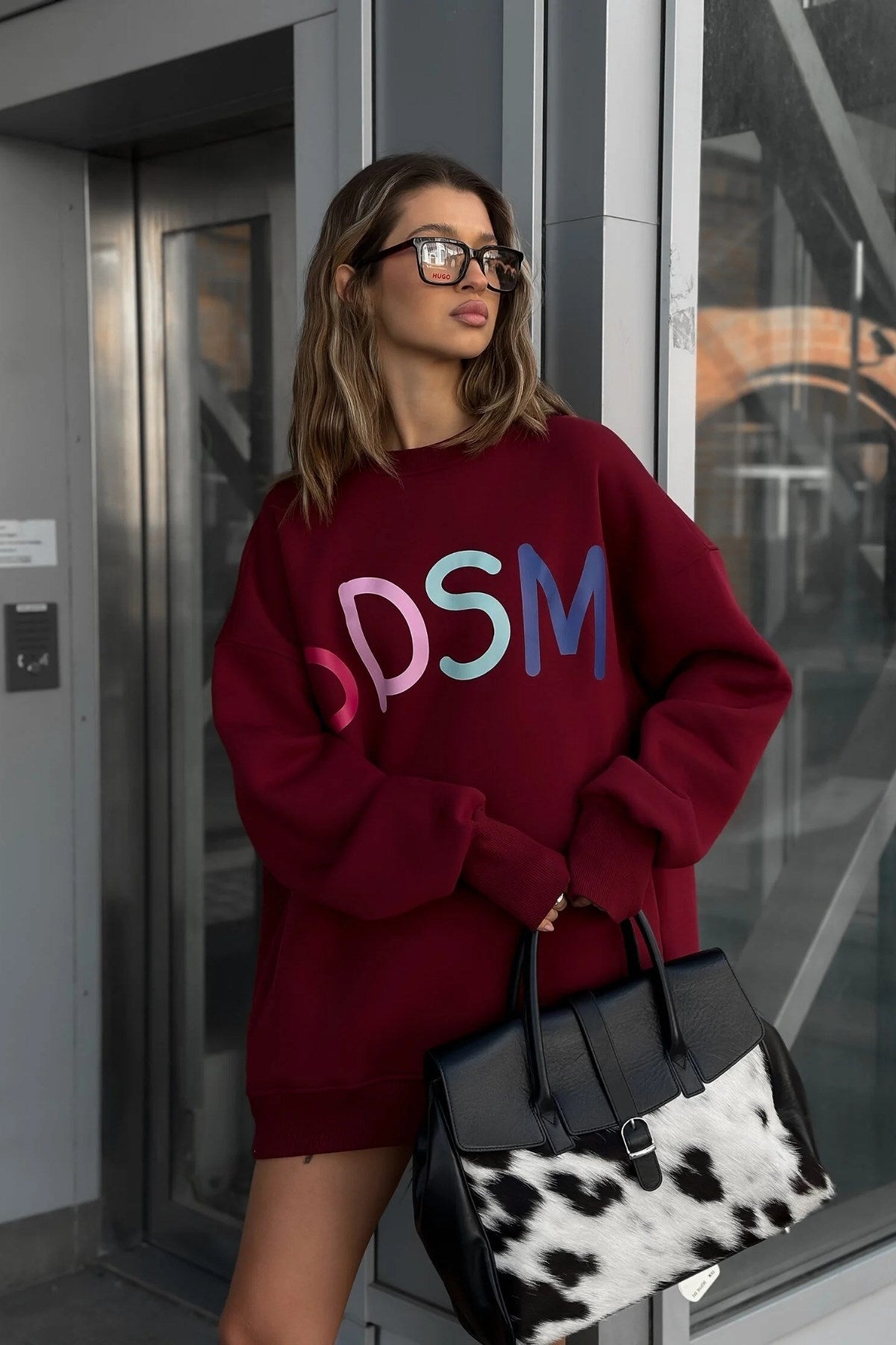 Kadın Oversize Sweatshirt Elbise Color Pop Baskılı Bordo – Bisiklet Yaka, 3 İplik Şardonlu Polar