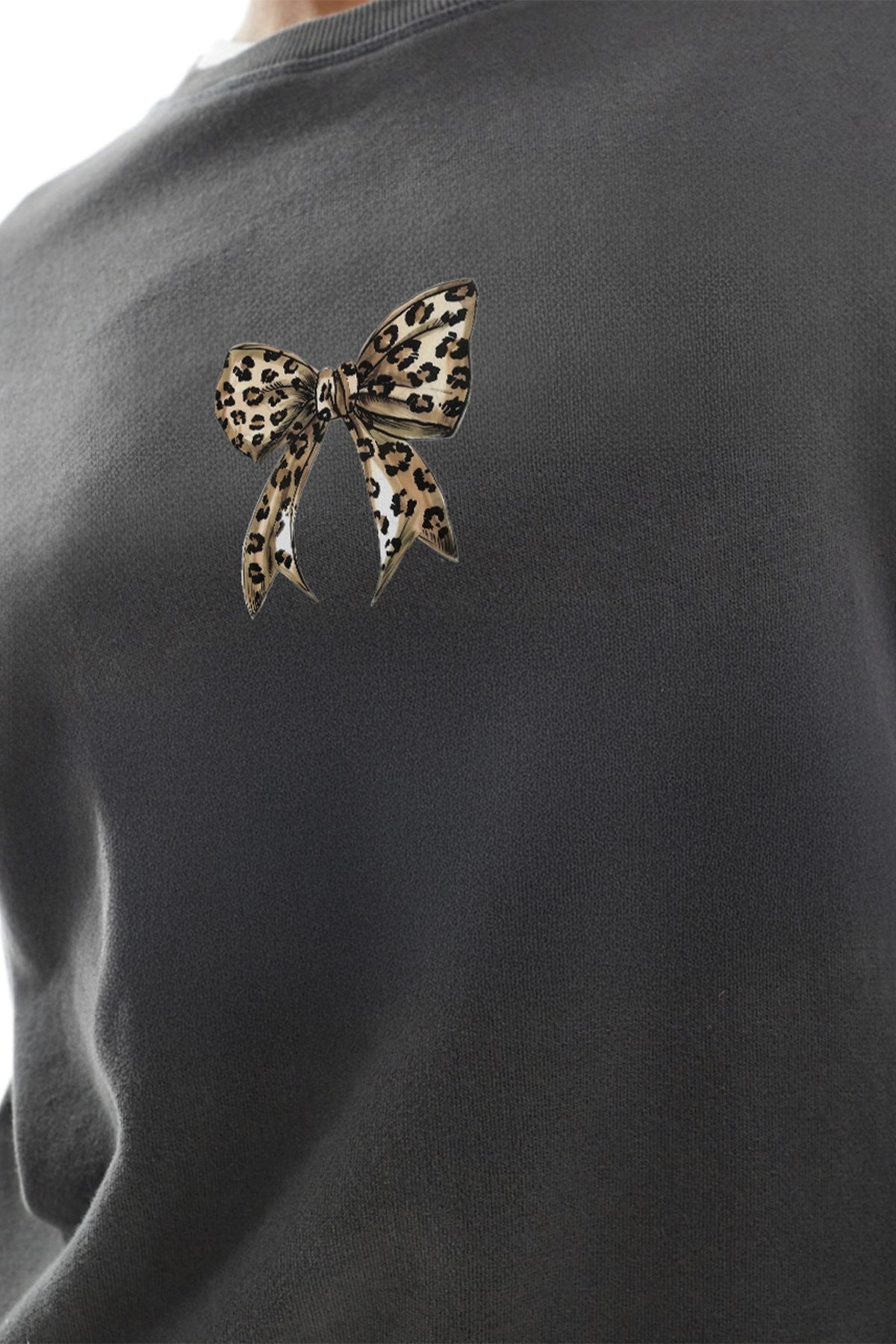 Kadın Oversize Sweatshirt Leo Kurdele Baskılı Füme – Bisiklet Yaka, 3 İplik Şardonlu Polar