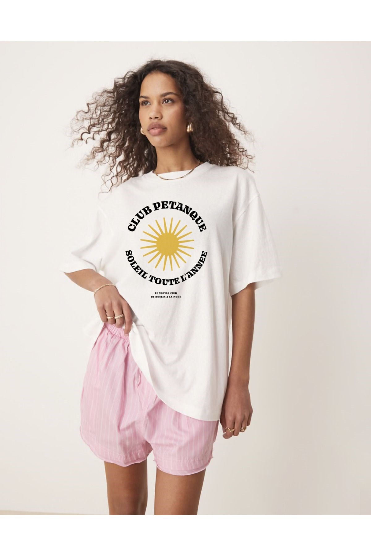 Kadın Oversize Tişört + Bez Çanta Hediyeli Kombin – CLUB PETANQUE Baskılı %100 Pamuk
