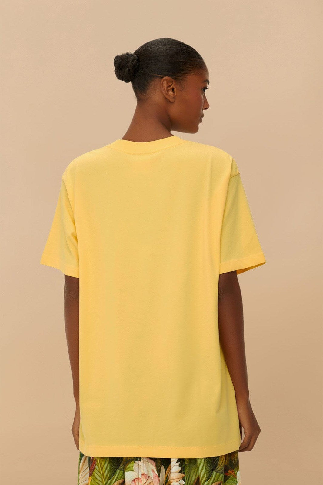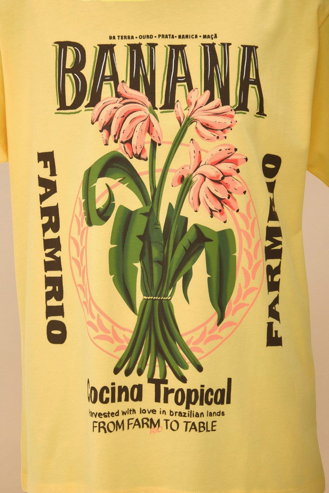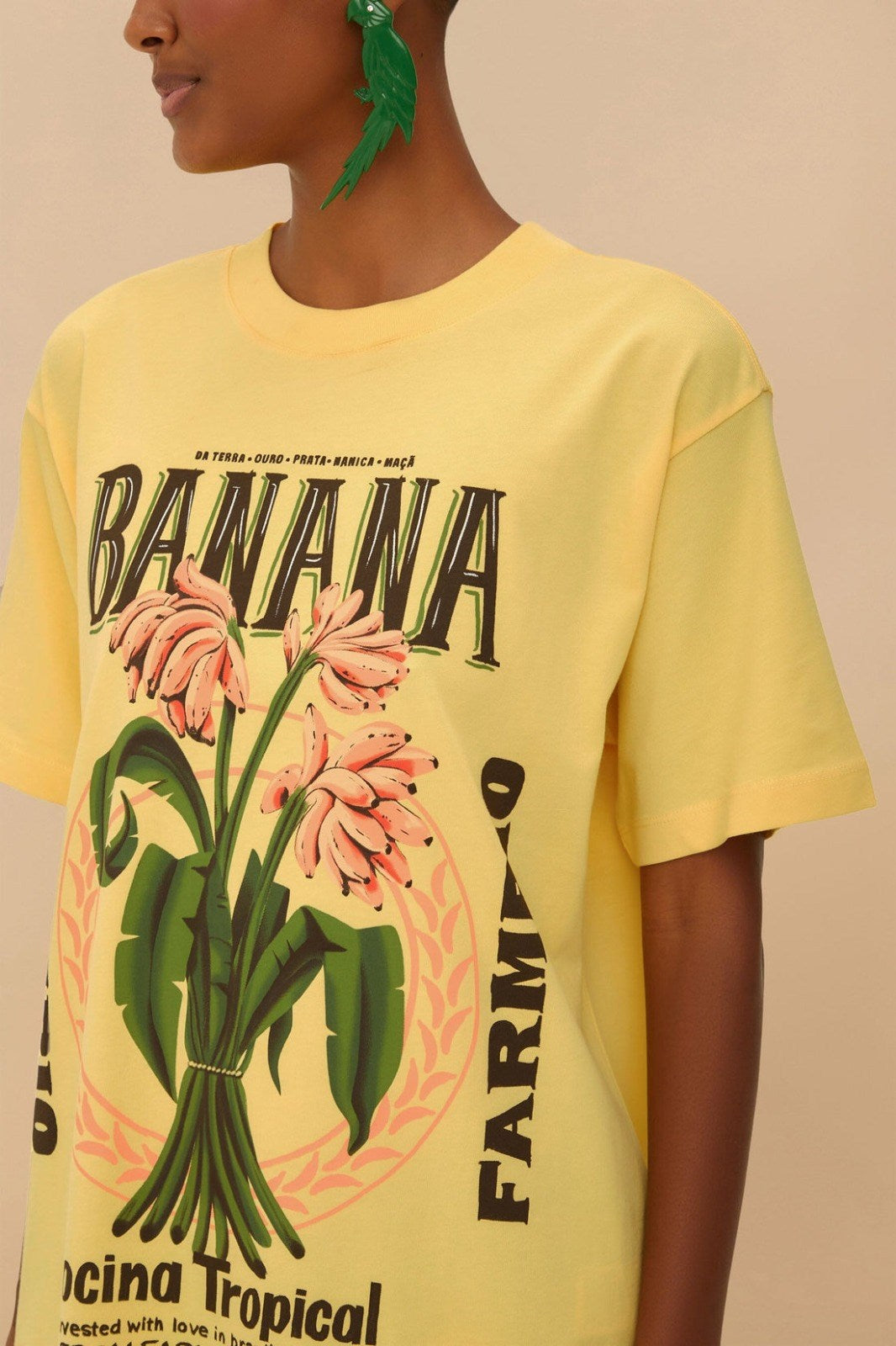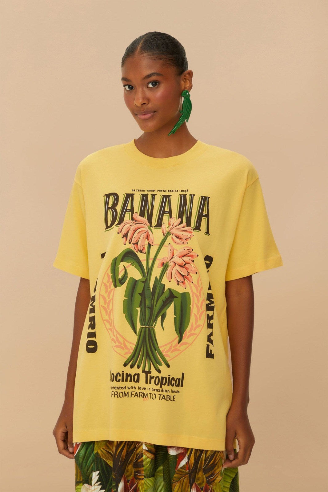 Kadın Sarı Oversize Banana Yazılı Tropikal Desenli Yazlık Tişört