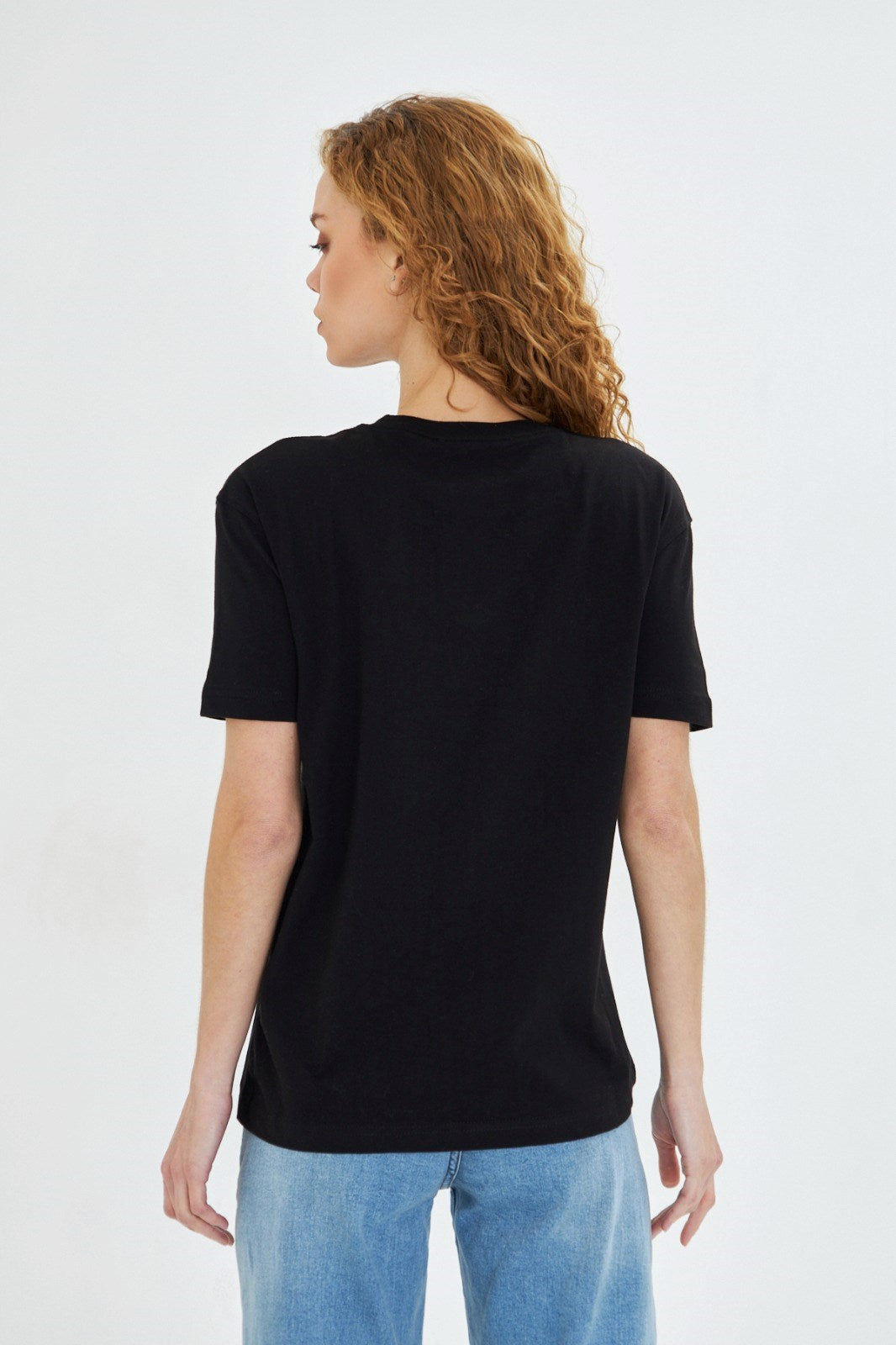 Günlük kombinlerde jean pantolon, şort veya eteklerle rahatça kullanabilirsiniz. Hem spor hem de şehir şıklığı için idealdir. Stil sahibi kadınların gardırobunda mutlaka bulunması gereken bu tişört, dayanıklı baskısı ve nefes alabilen kumaşı ile uzun süreli kullanım sağlar.