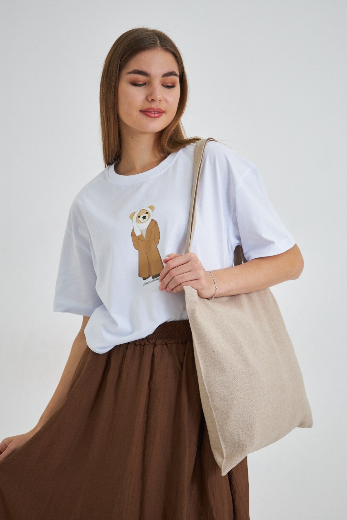Kadın Special Edition Ayıcık Baskılı Beyaz Tişört