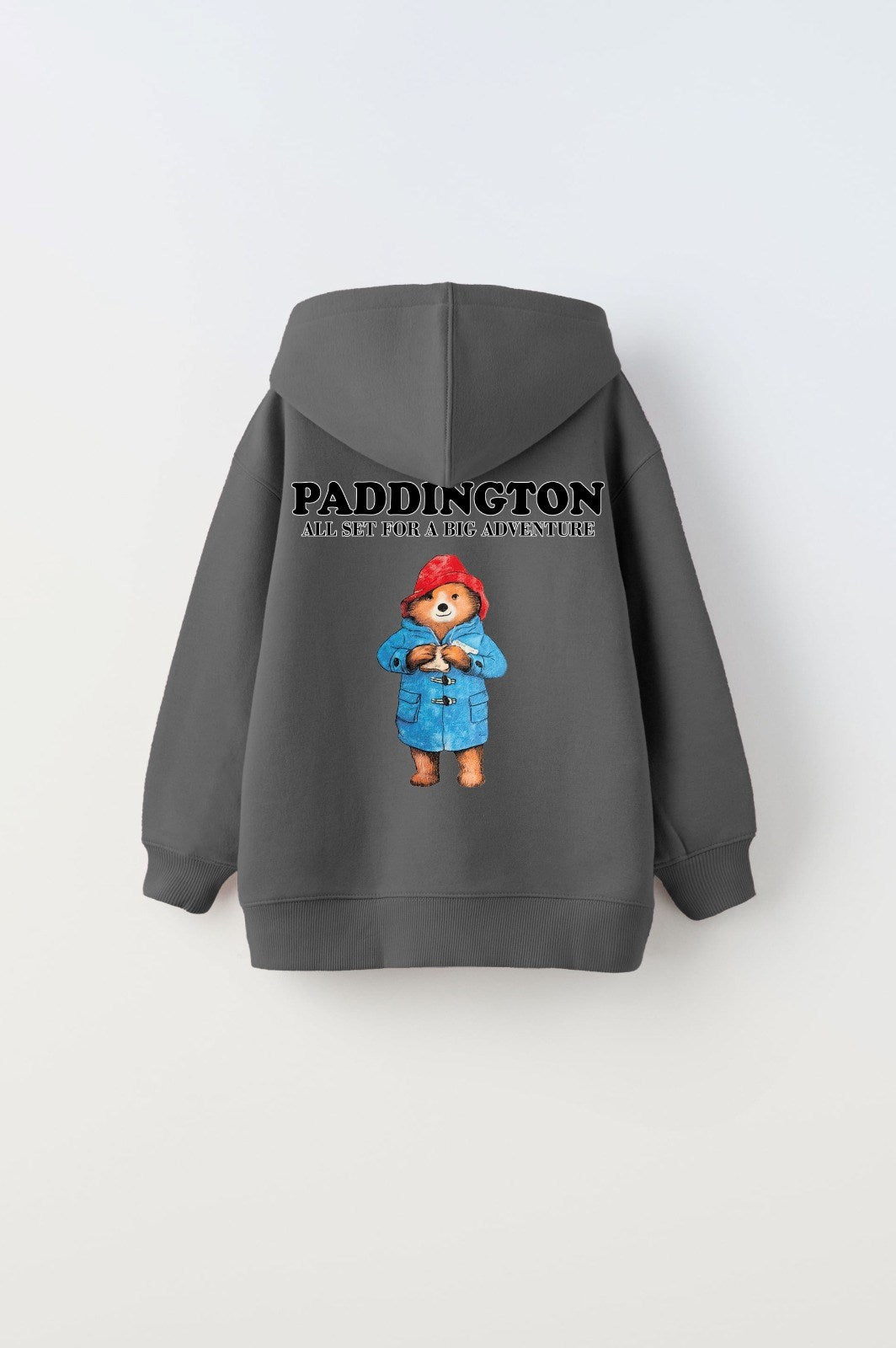 Kapüşonlu İçi Polar Paddington Yazılı Ayı Figür Baskılı Füme Unisex Hoodie Çocuk Sweatshirt - GRİ / 4-5 Yaş