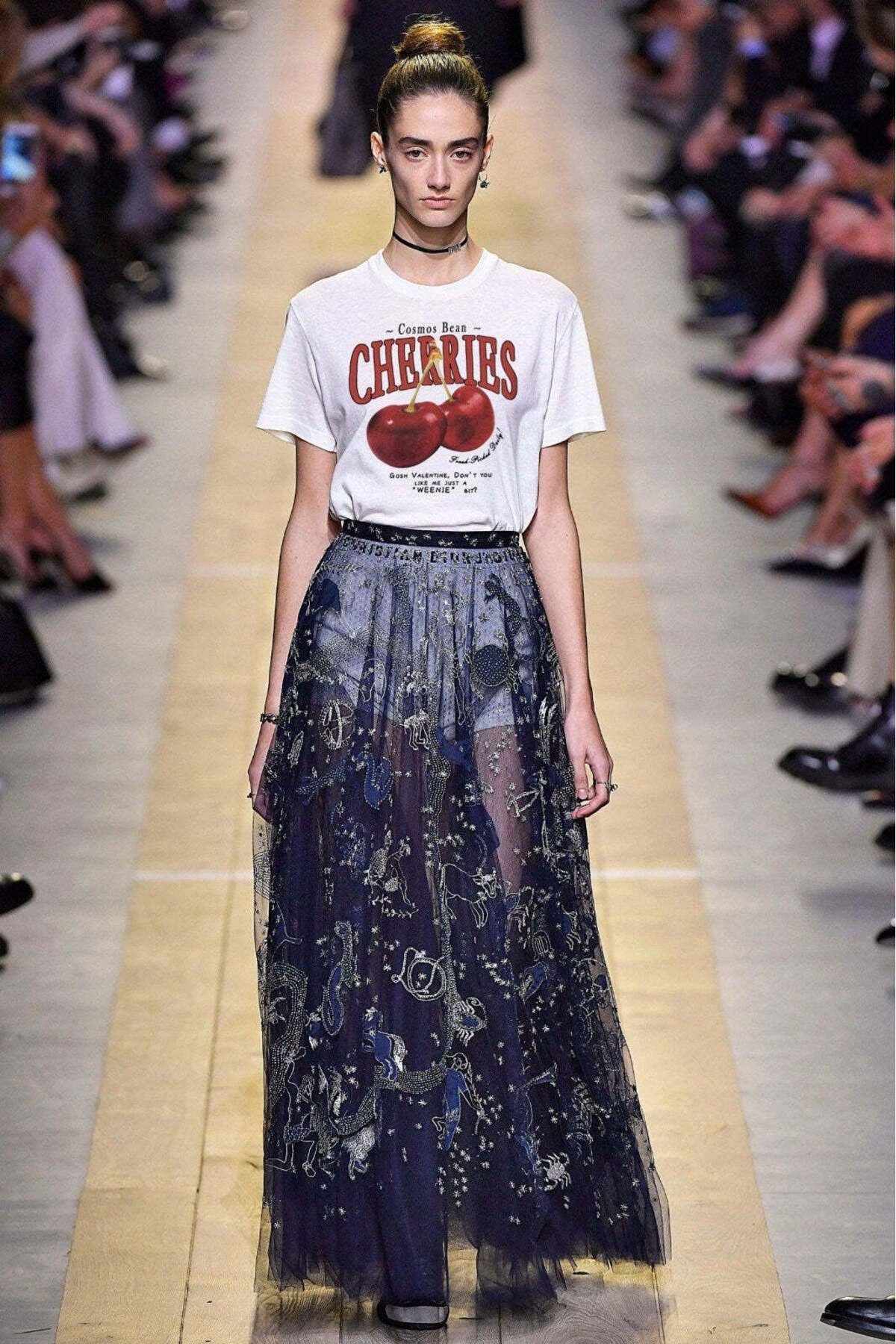 Kiraz Desenli Beyaz Oversize Kadın T-Shirt ve Ücretsiz Bez Çanta