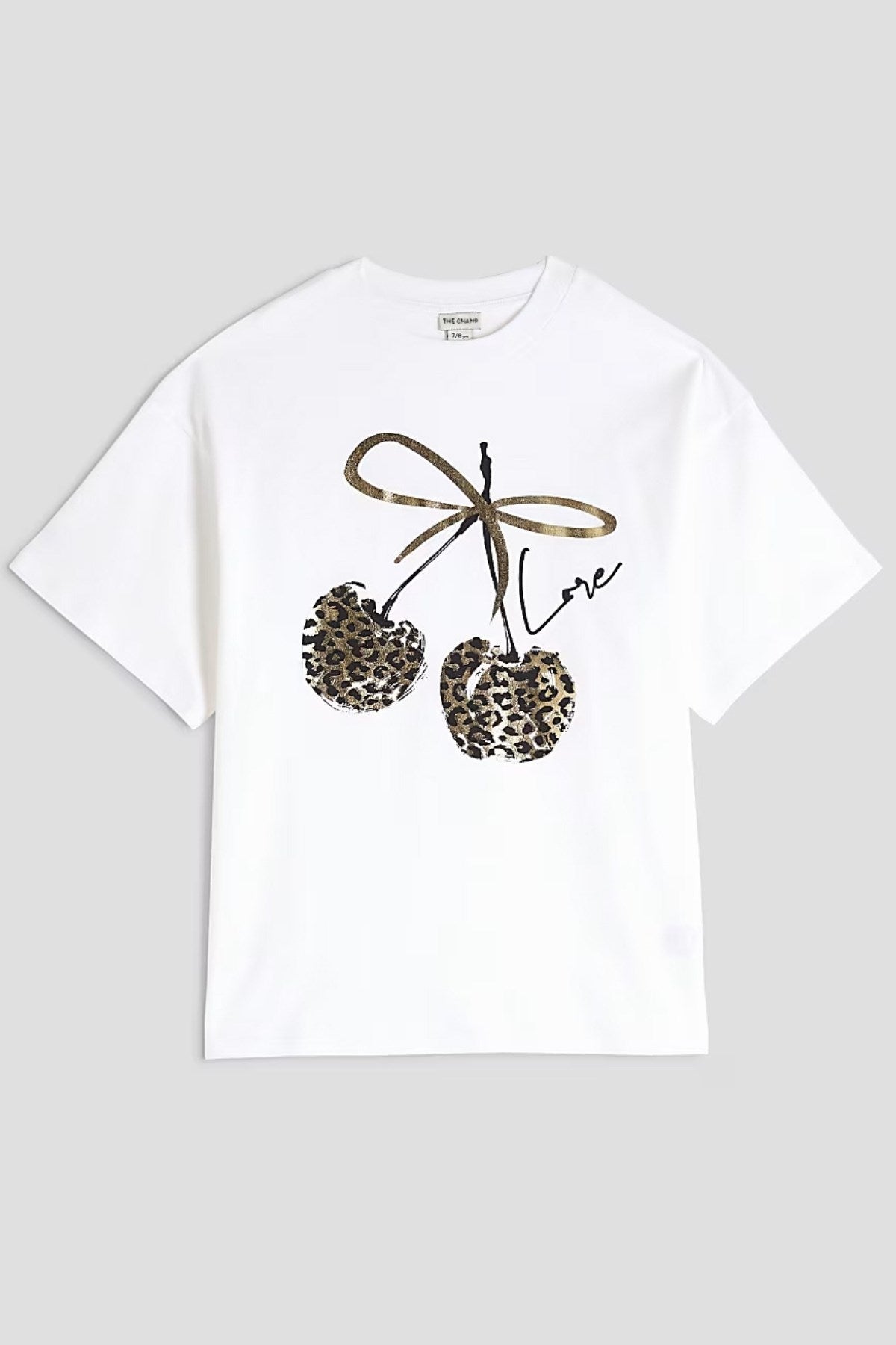 Kız Çocuk Leopar Kiraz Baskılı Beyaz Tişört – Yazlık Pamuklu