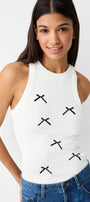 Kurdele Detaylı Kadın Vücuda Oturan Kaşkorse Atlet - Beyaz / XS-S