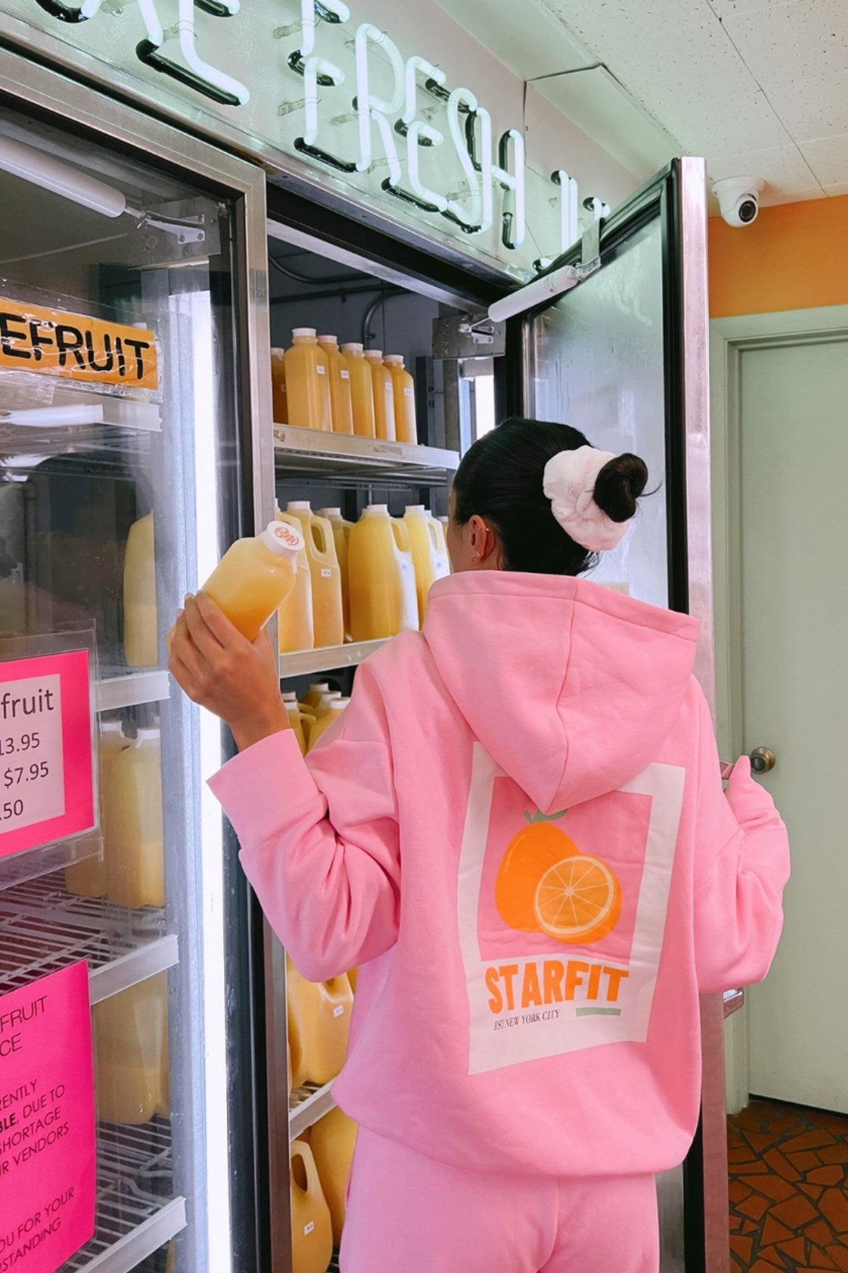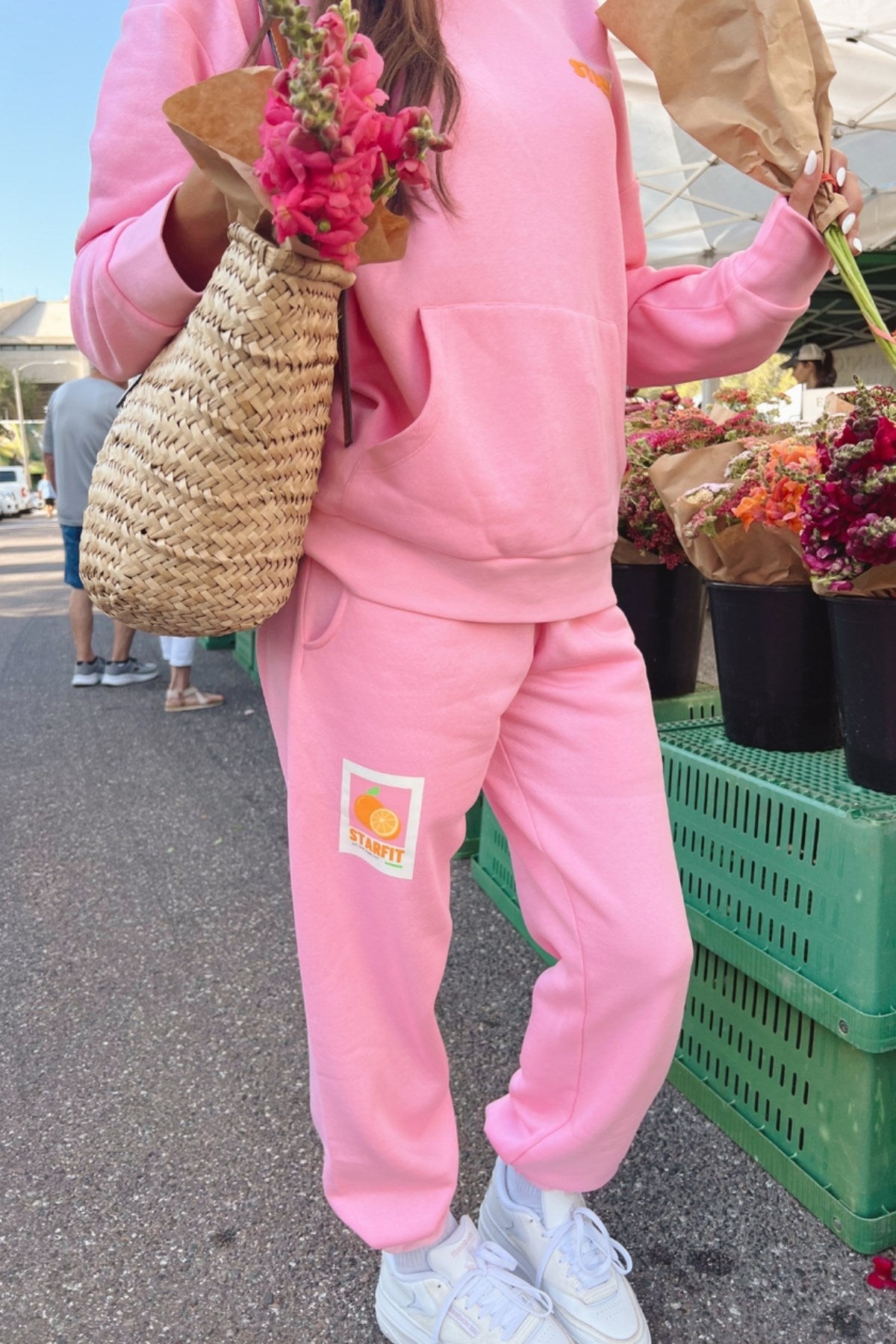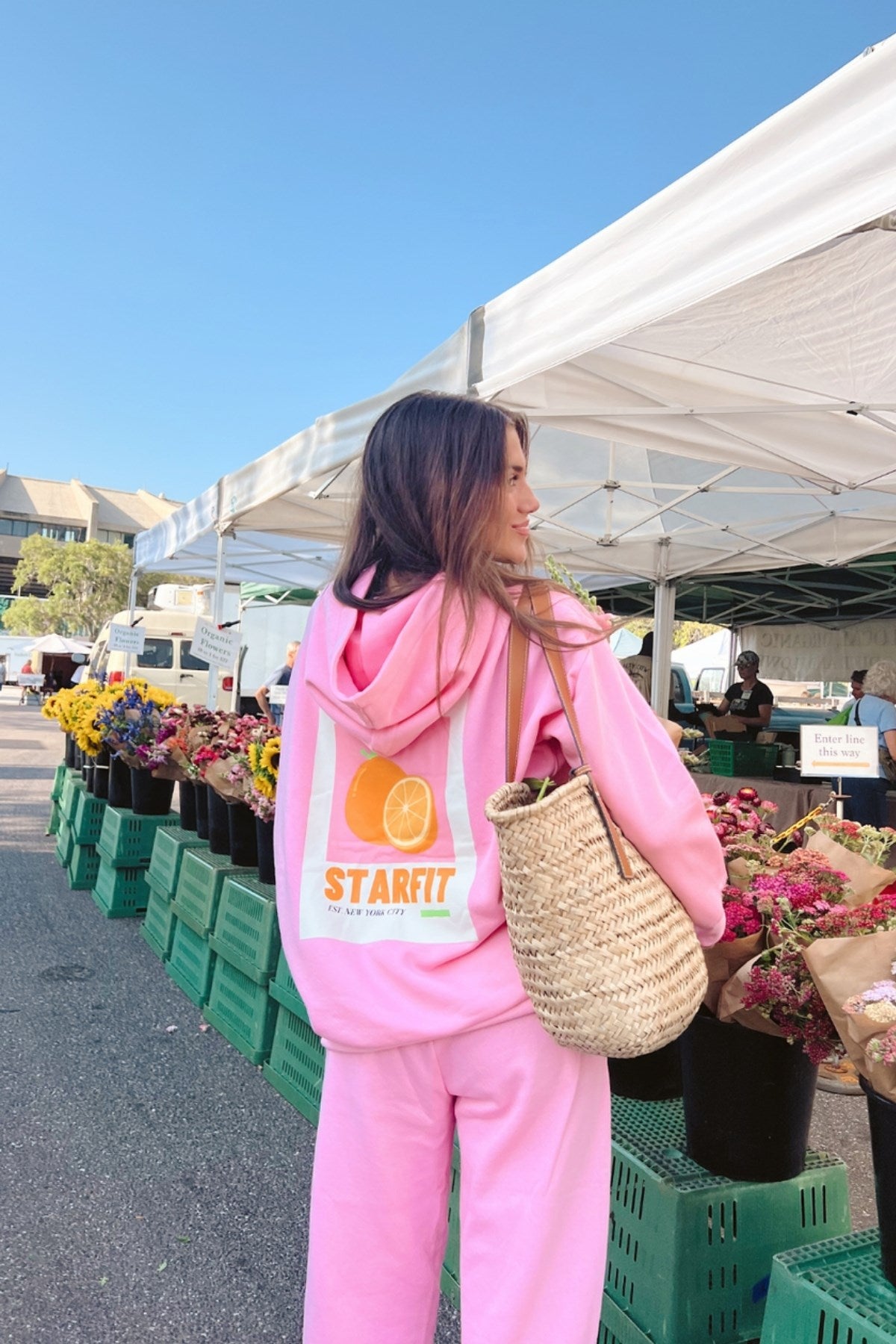 Oversize Kadın Eşofman Takımı Pembe - 3 İplik Şardonlu Polar, Kapüşonlu, Sırt Tam Portakal Baskı