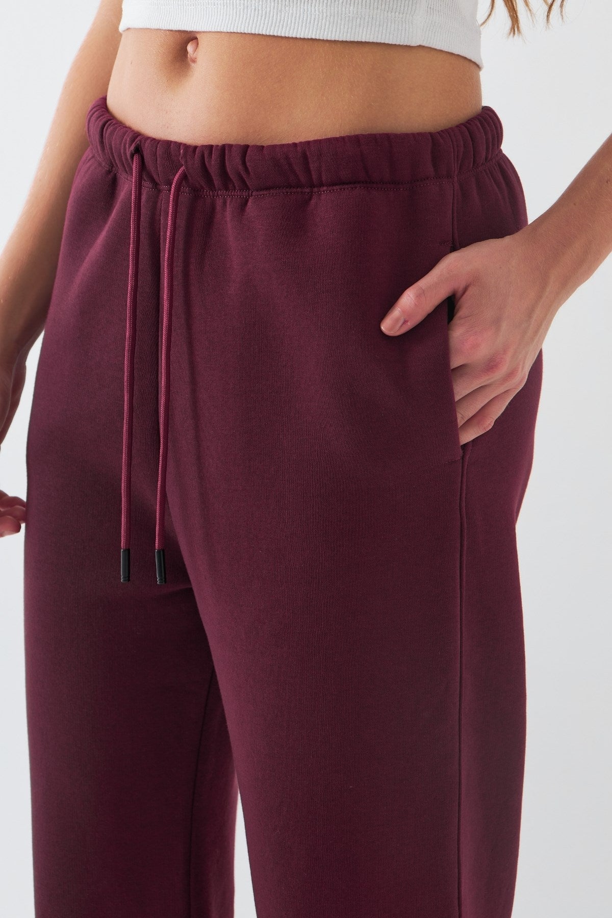 Oversize Unisex Eşofman Altı Bordo – 3 İplik Şardonlu, Bol Paça, Cepli, Modern Rahat Kesim