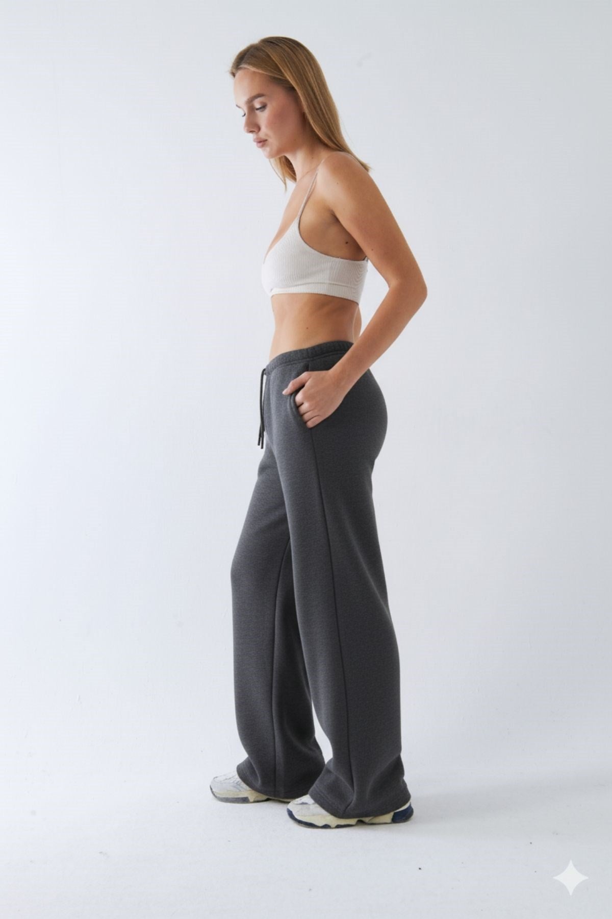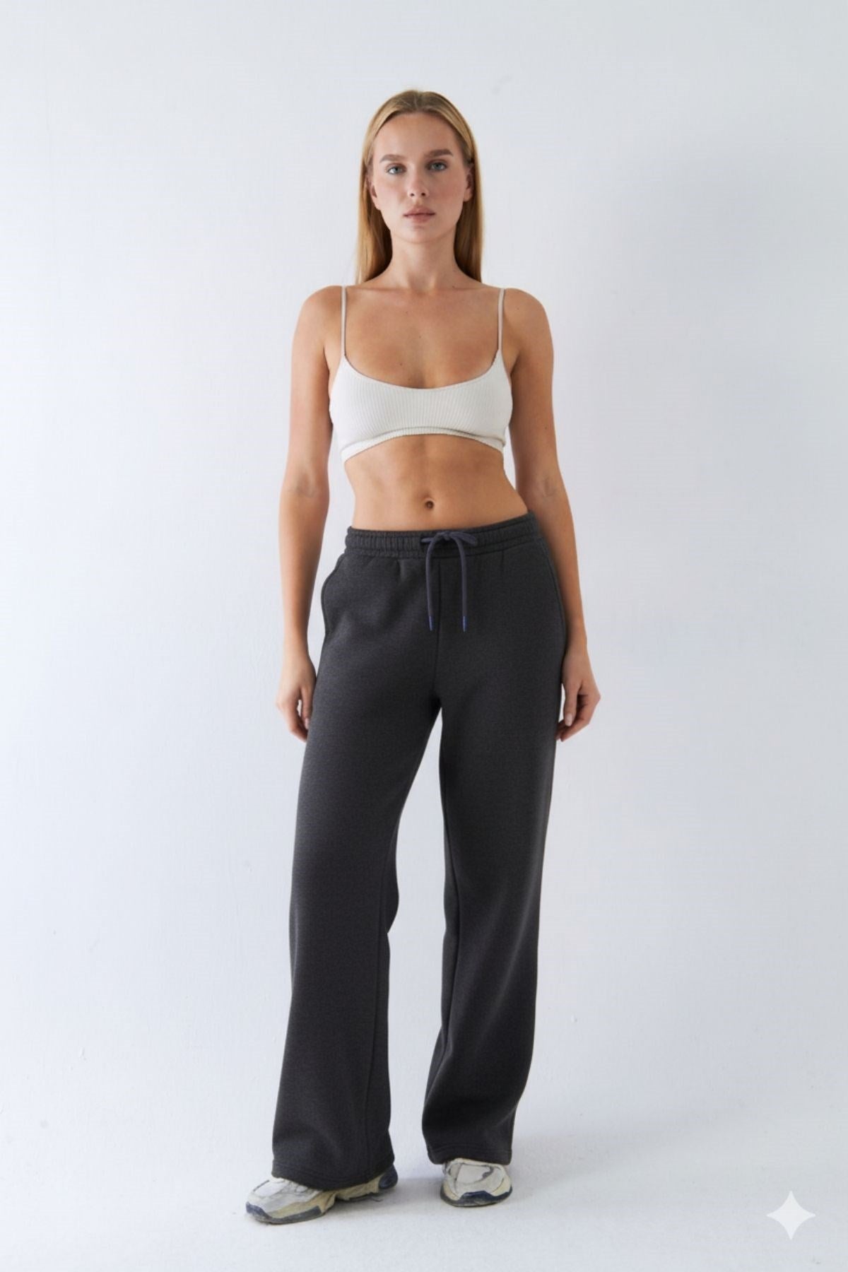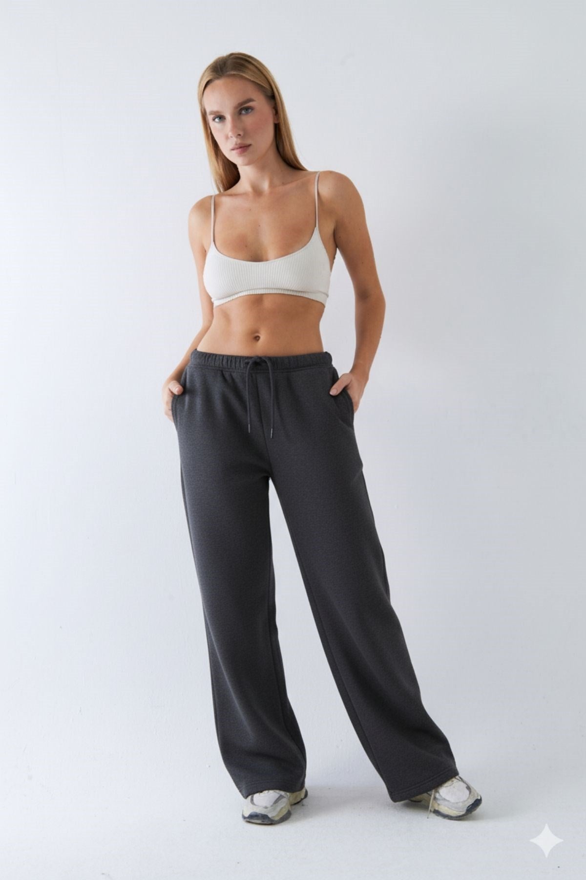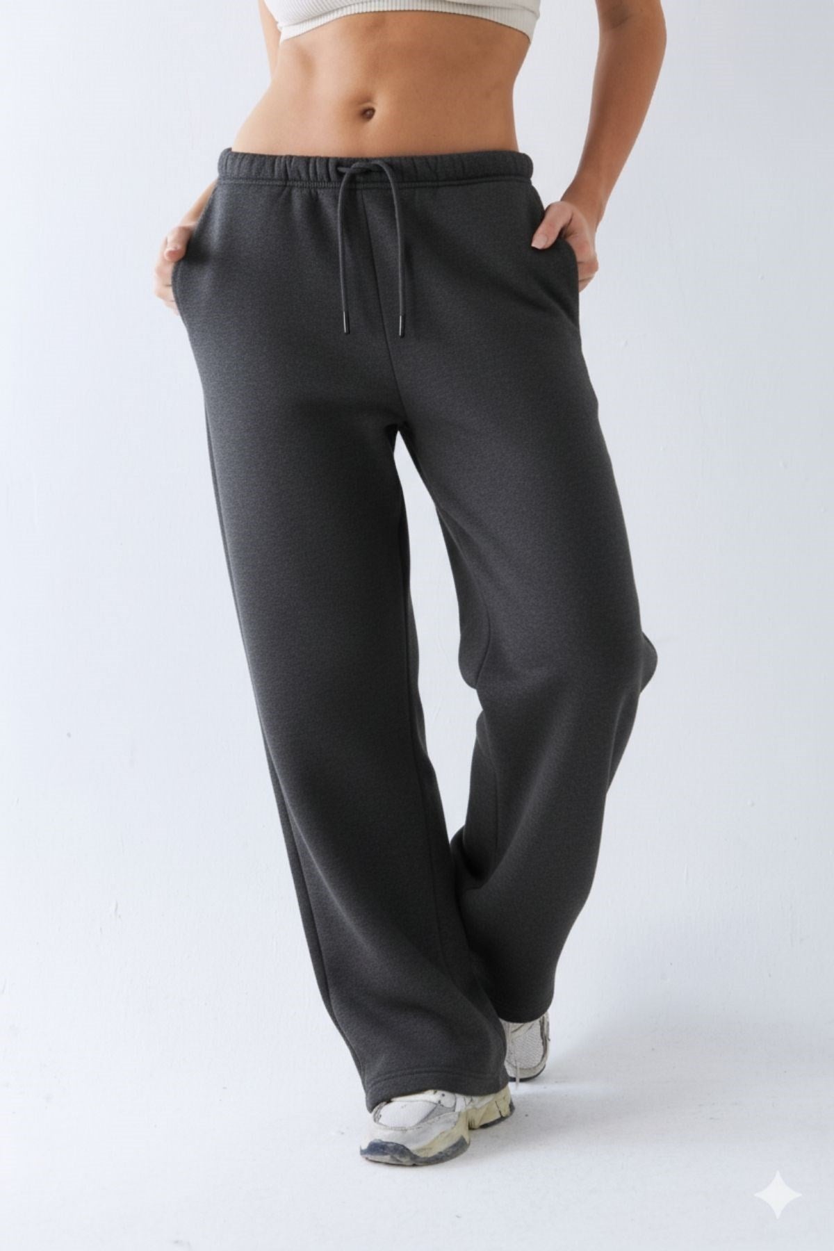 Oversize Unisex Eşofman Altı Füme Melanj – 3 İplik Şardonlu, Bol Paça, Cepli, Modern Rahat Kesim