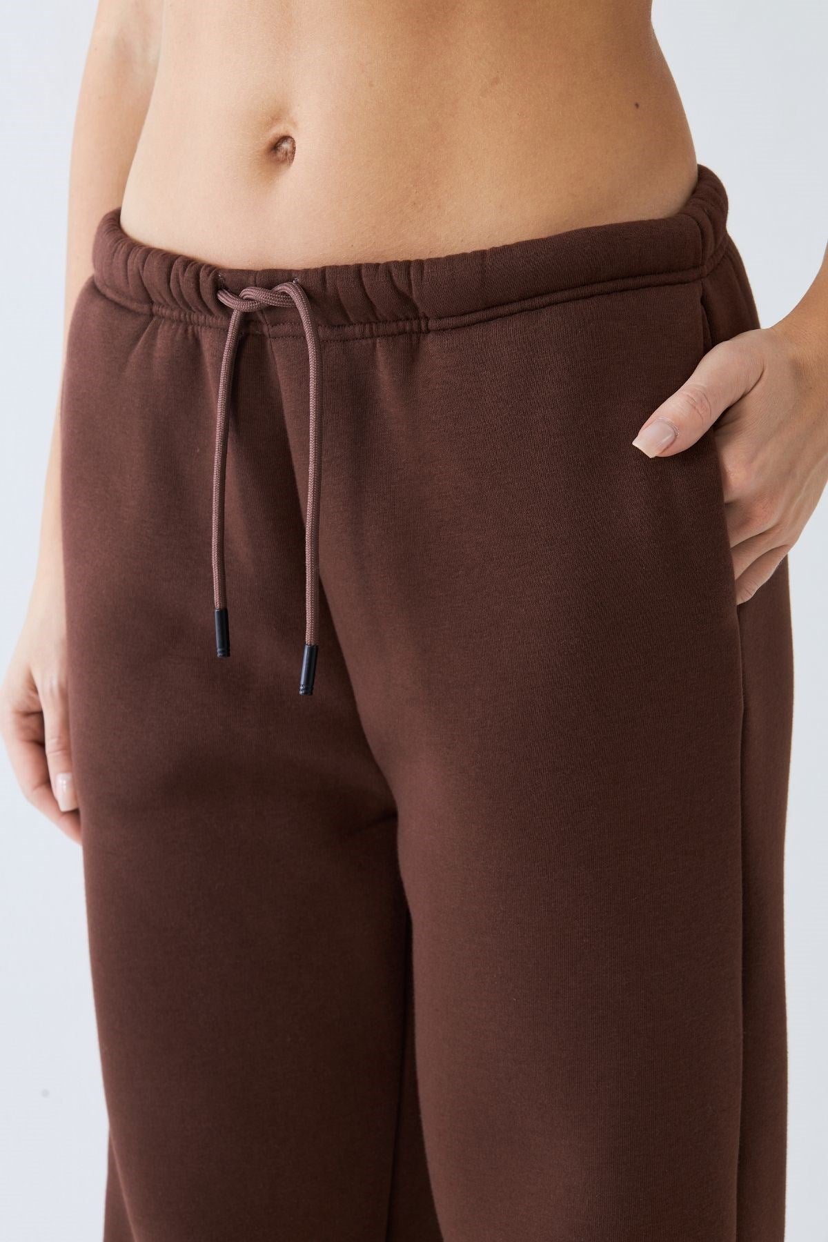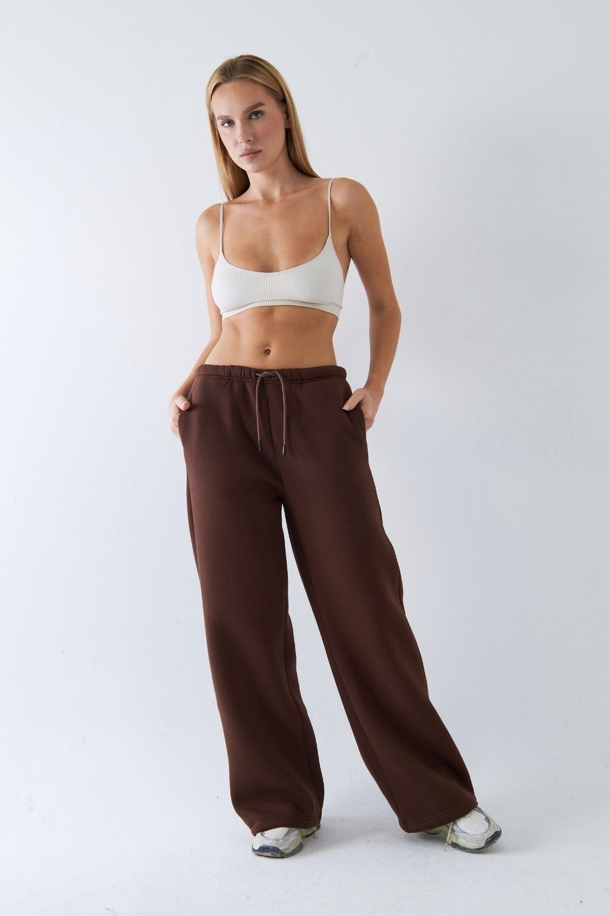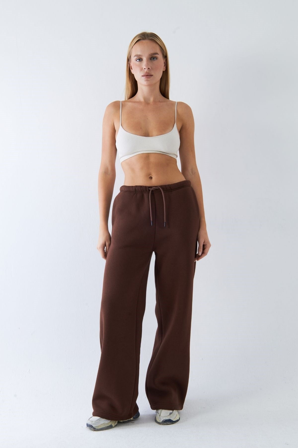 Oversize Unisex Eşofman Altı Kahverengi – 3 İplik Şardonlu, Bol Paça, Cepli, Modern Rahat Kesim