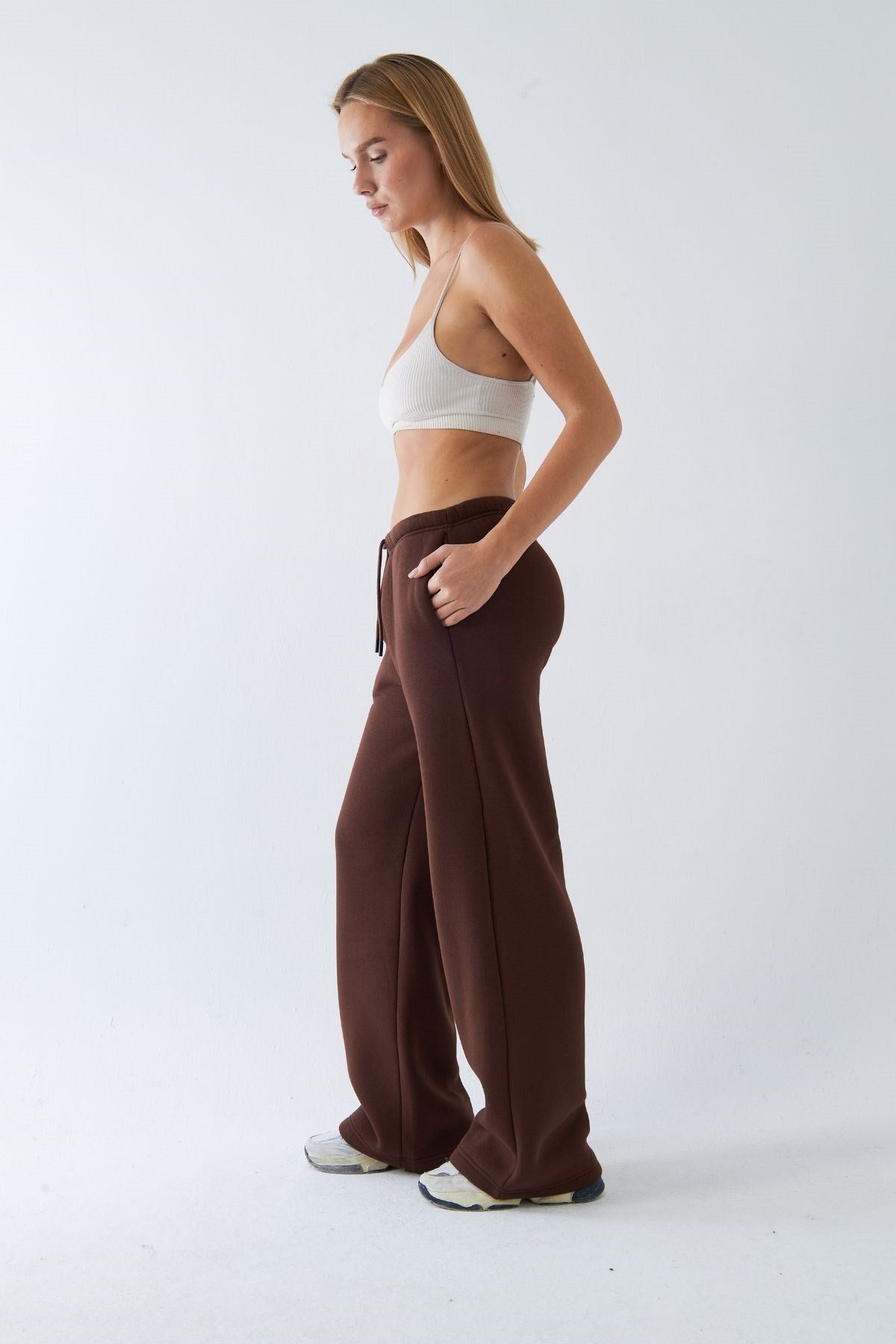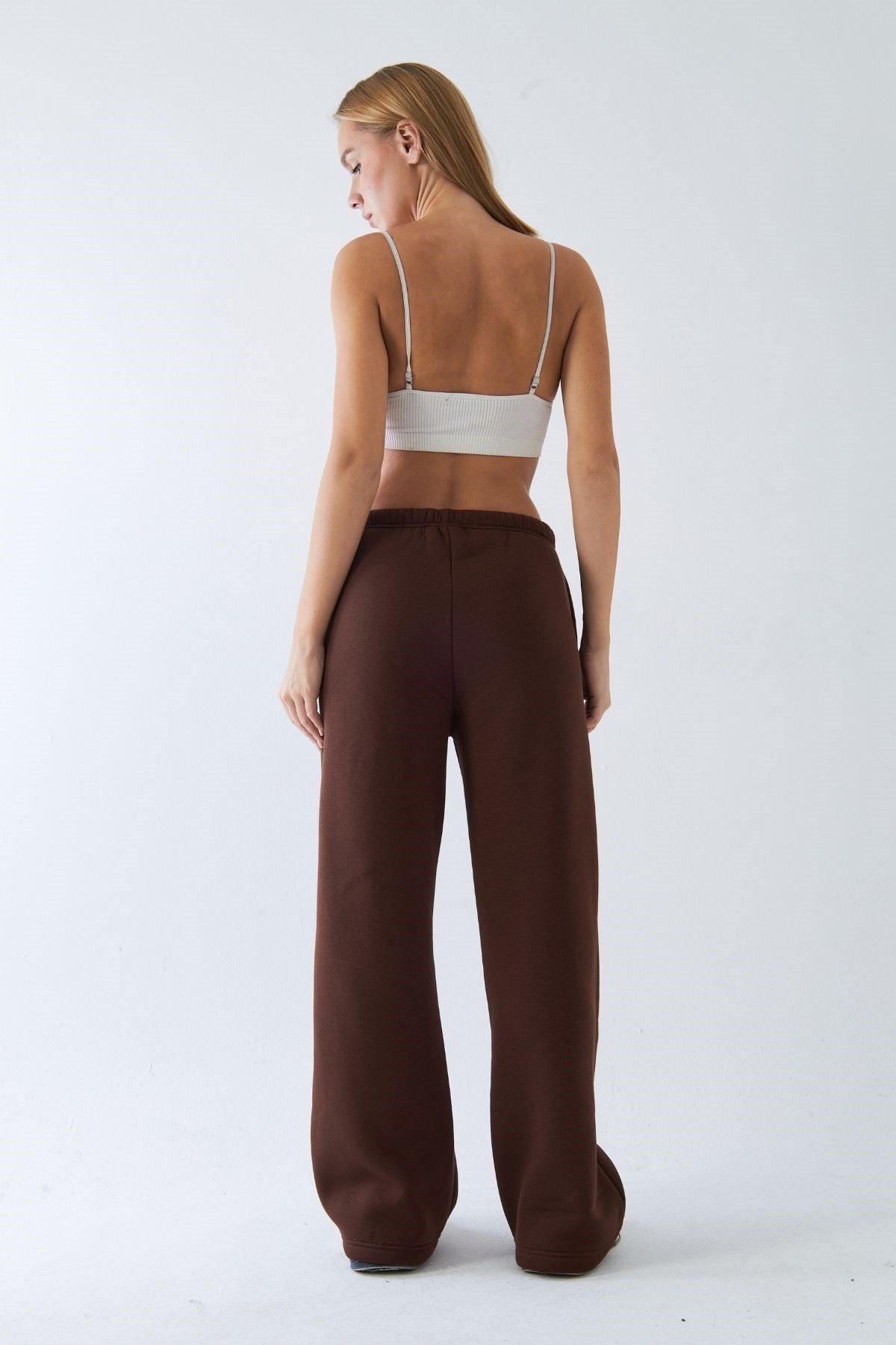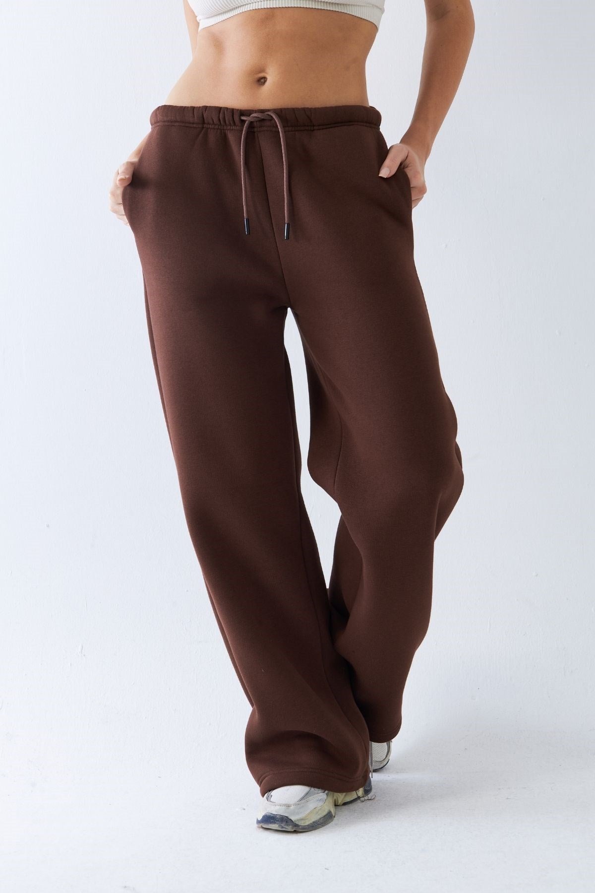 Oversize Unisex Eşofman Altı Kahverengi – 3 İplik Şardonlu, Bol Paça, Cepli, Modern Rahat Kesim