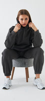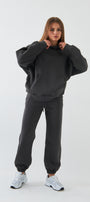 Oversize Unisex Eşofman Takımı Füme – Basic, 3 İplik Şardonlu Polar; Kapüşonlu Üst, Lastikli Alt - 2XL / FÜME