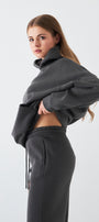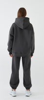 Oversize Unisex Eşofman Takımı Füme – Basic, 3 İplik Şardonlu Polar; Kapüşonlu Üst, Lastikli Alt
