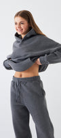 Oversize Unisex Eşofman Takımı Füme Melanj – Basic, 3 İplik Polar; Kapüşonlu Üst, Lastikli Alt