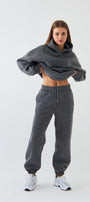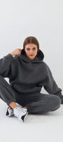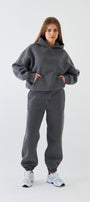 Oversize Unisex Eşofman Takımı Füme Melanj – Basic, 3 İplik Polar; Kapüşonlu Üst, Lastikli Alt - 2XL / ANTRASİT