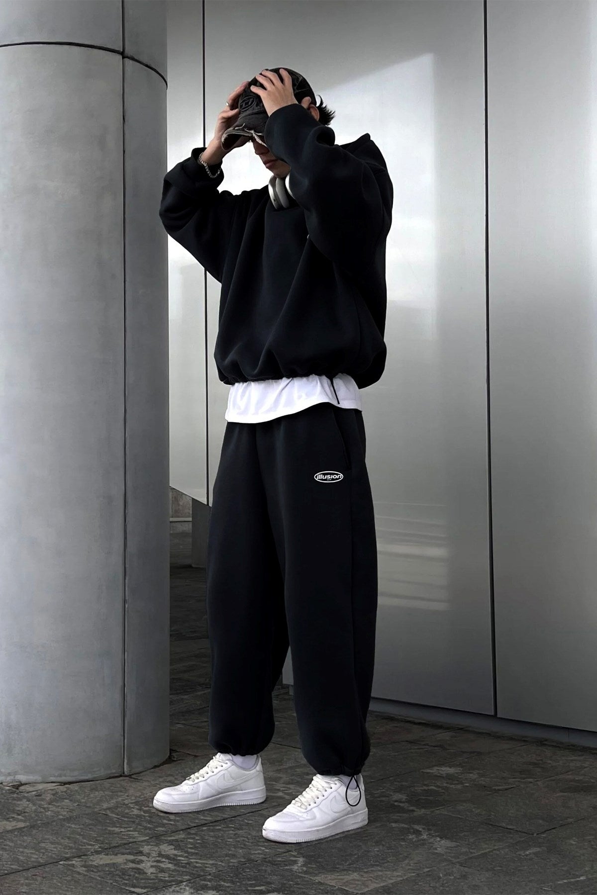 Öne çıkanlar: unisex oversize kalıp • 3 iplik şardonlu 300–320 gr kumaş • kapüşonlu kanguru cepli sweat hoodie üst • cepli lastikli jogger alt • Illusion Champ logo baskı • sıcak ve yumuşak iç yüzey