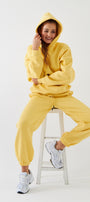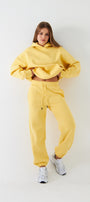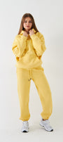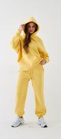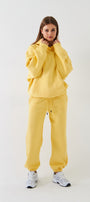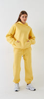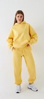 Oversize Unisex Eşofman Takımı Sarı – Basic, 3 İplik Şardonlu Polar; Kapüşonlu Üst, Lastikli Alt