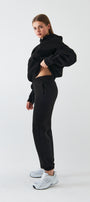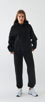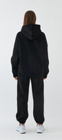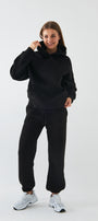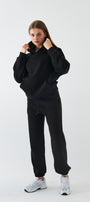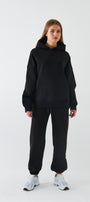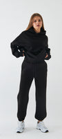 Oversize Unisex Eşofman Takımı Siyah – Basic, 3 İplik Şardonlu Polar; Kapüşonlu Üst, Lastikli Alt