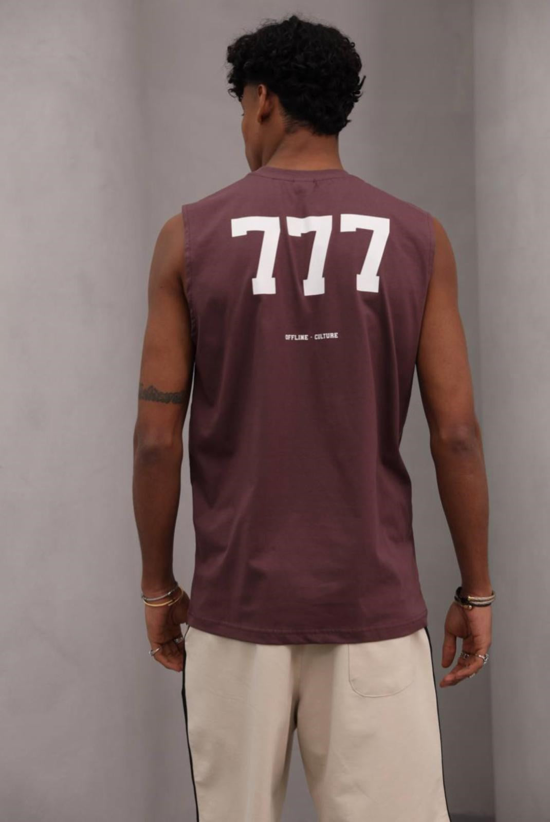 Arkada büyük "777", altında "Offline Culture" baskı detayı
