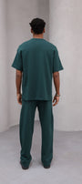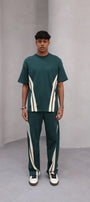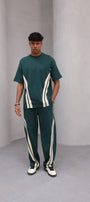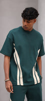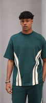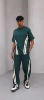 Rahat Kesim Şerit Detaylı Minimal Çizgili Oversize Erkek Günlük Takım - Nefti / S