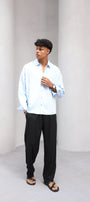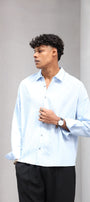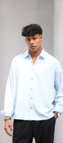 Yumuşak Dokulu Çizgili Modern Erkek Gömlek - Açık Mavi / S